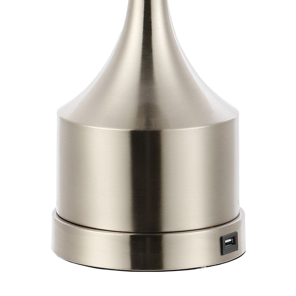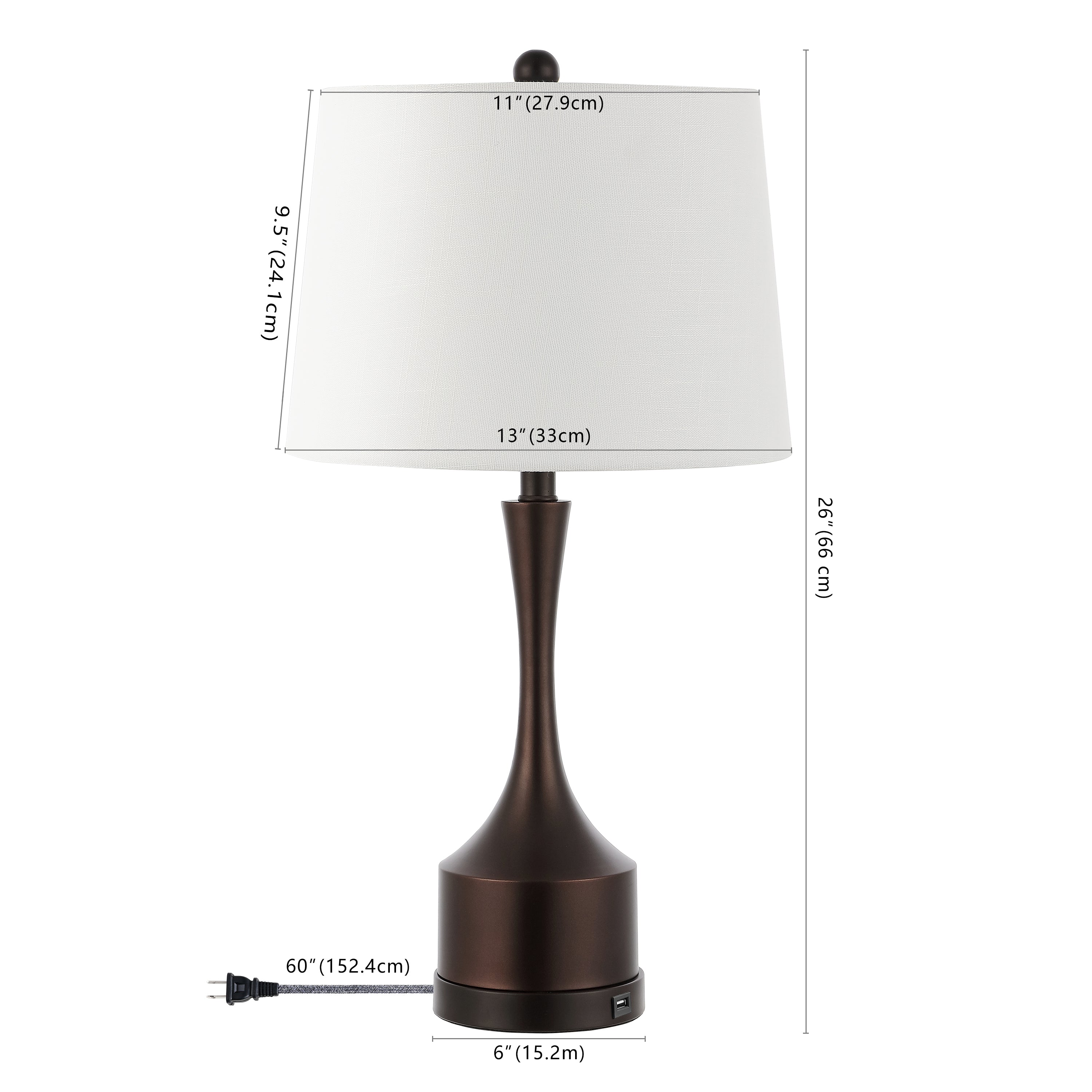 • Includes a linen-look hardback empirical shade and USB charging port for mobile devices