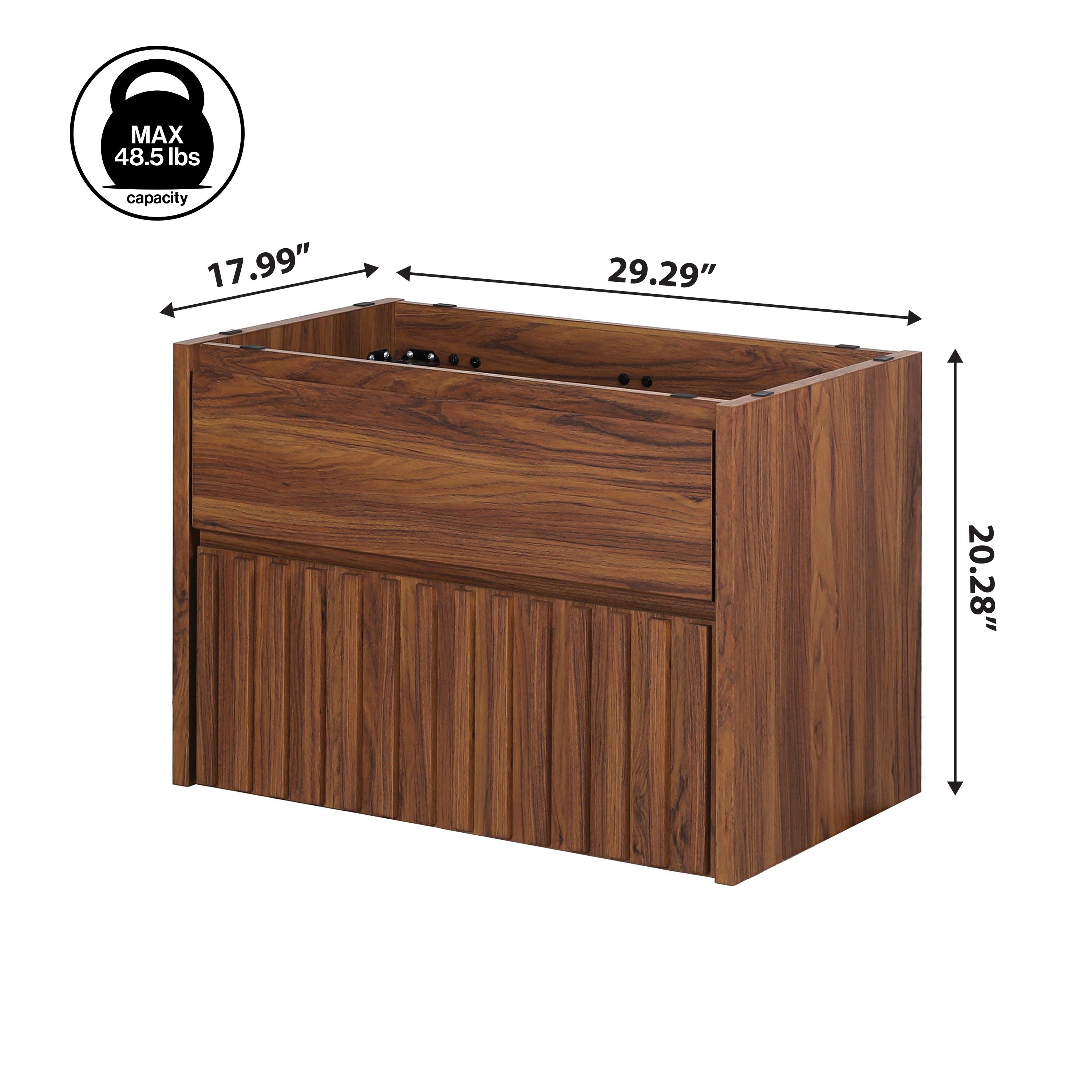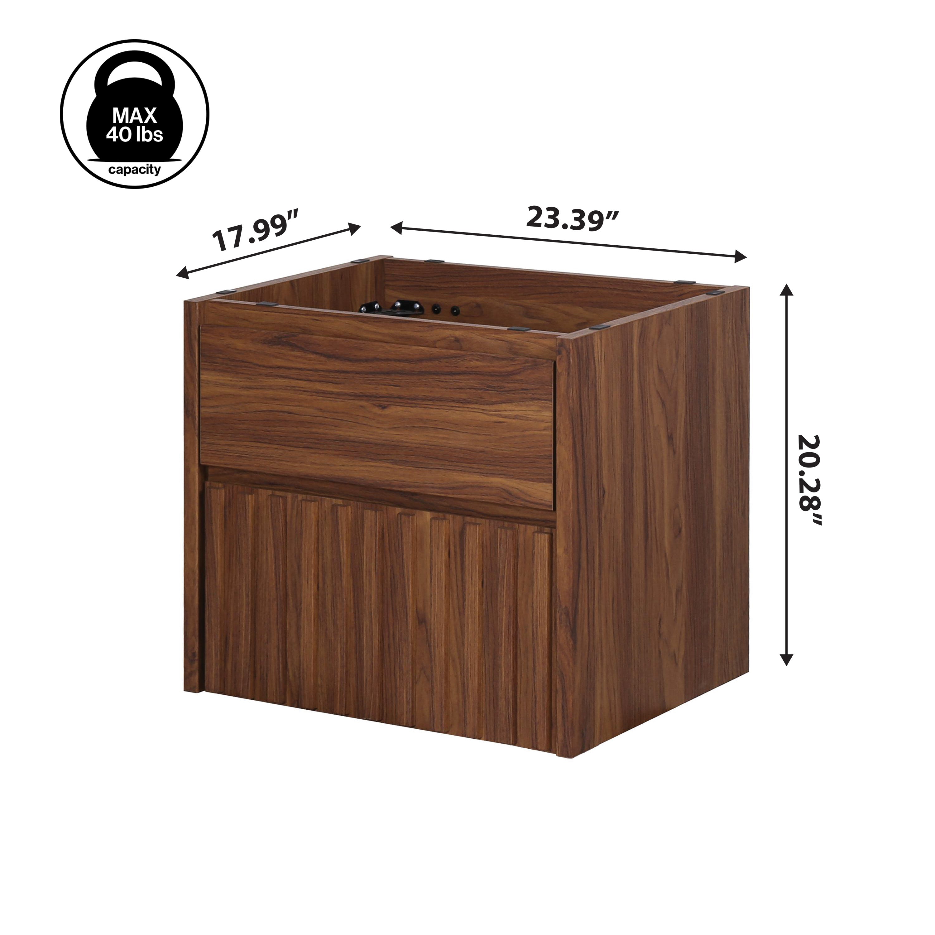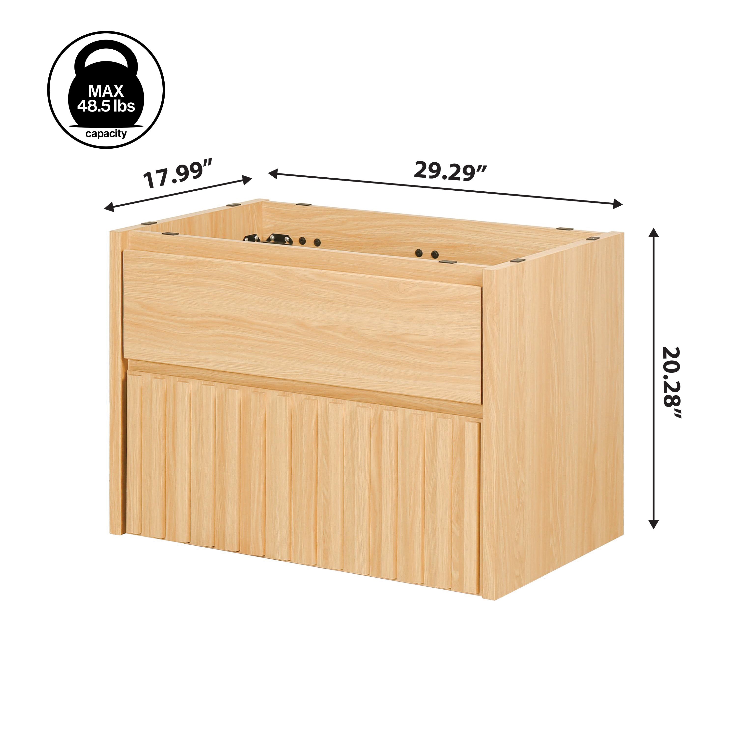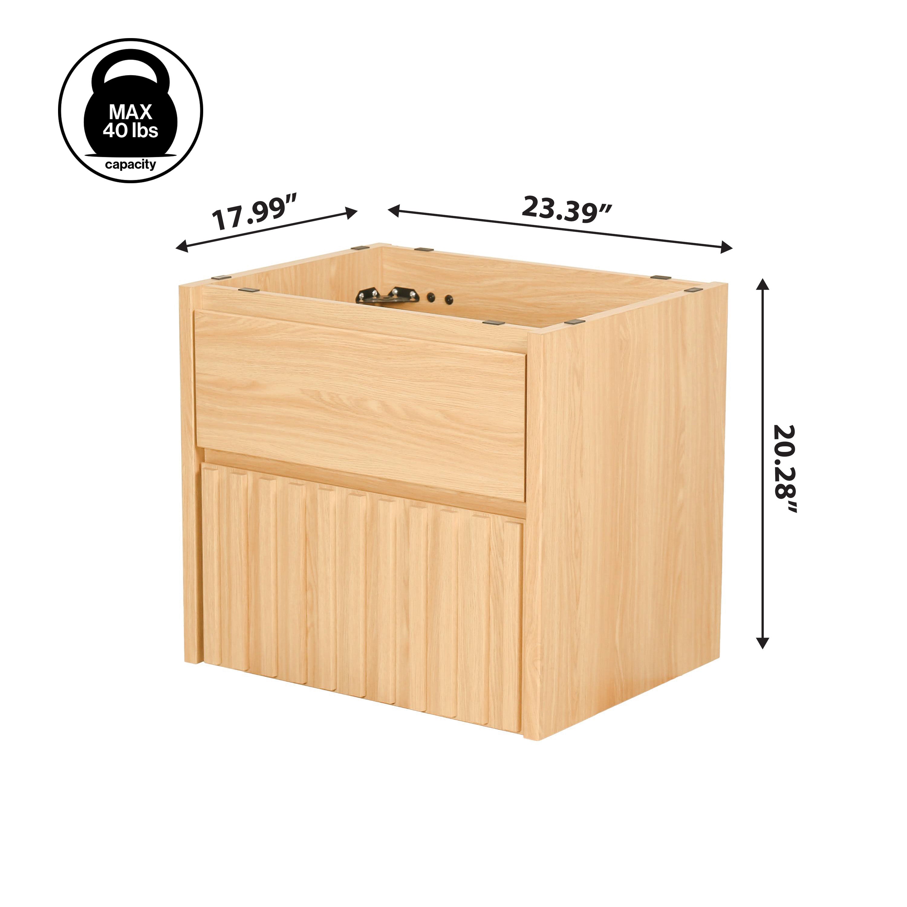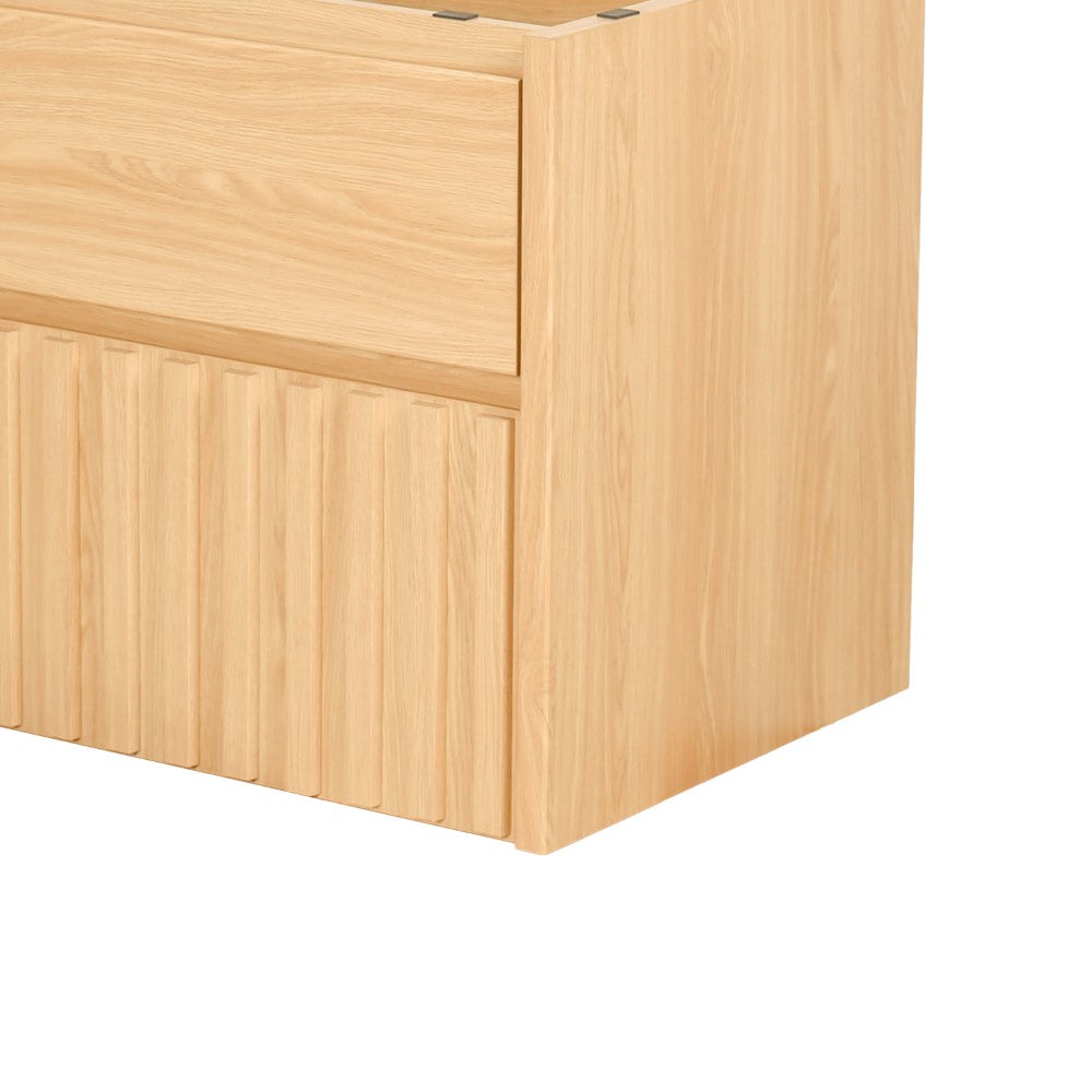 Upgrade any bathroom to a minimalist design with this modern wall-mounted vanity. Made from durable MDF with a wood-grain finish, this space-saving vanity features a chic fluted pattern on the front. Two large drawers offer plenty of storage; sink is not included.