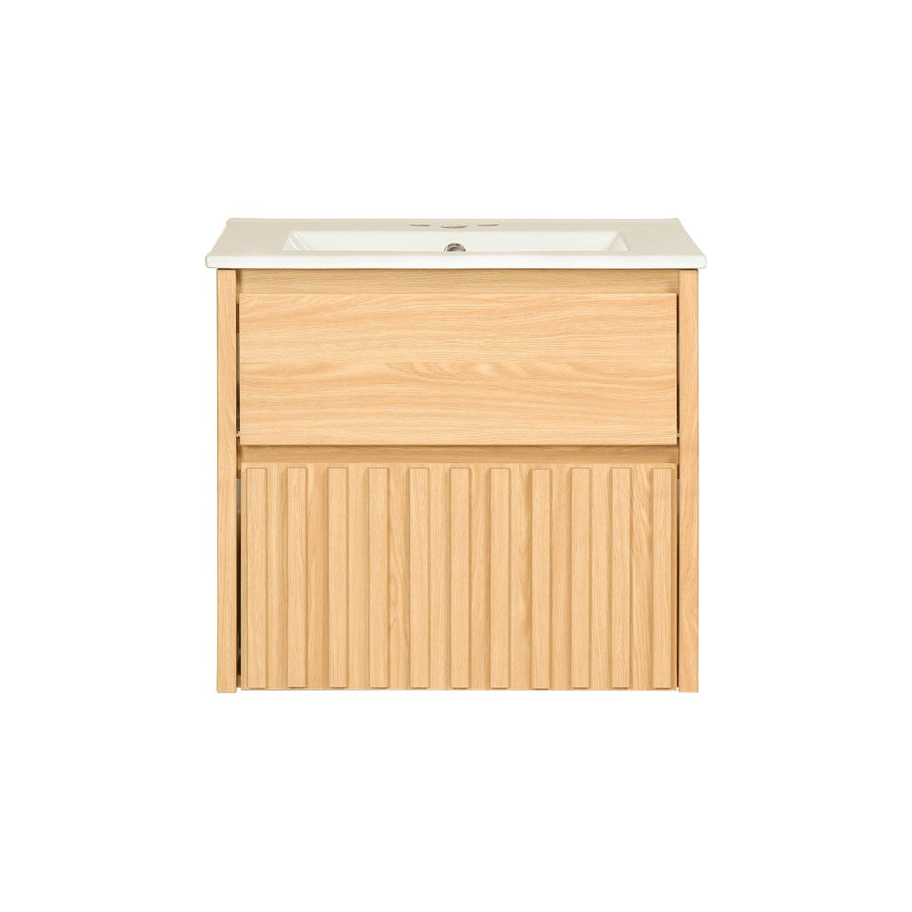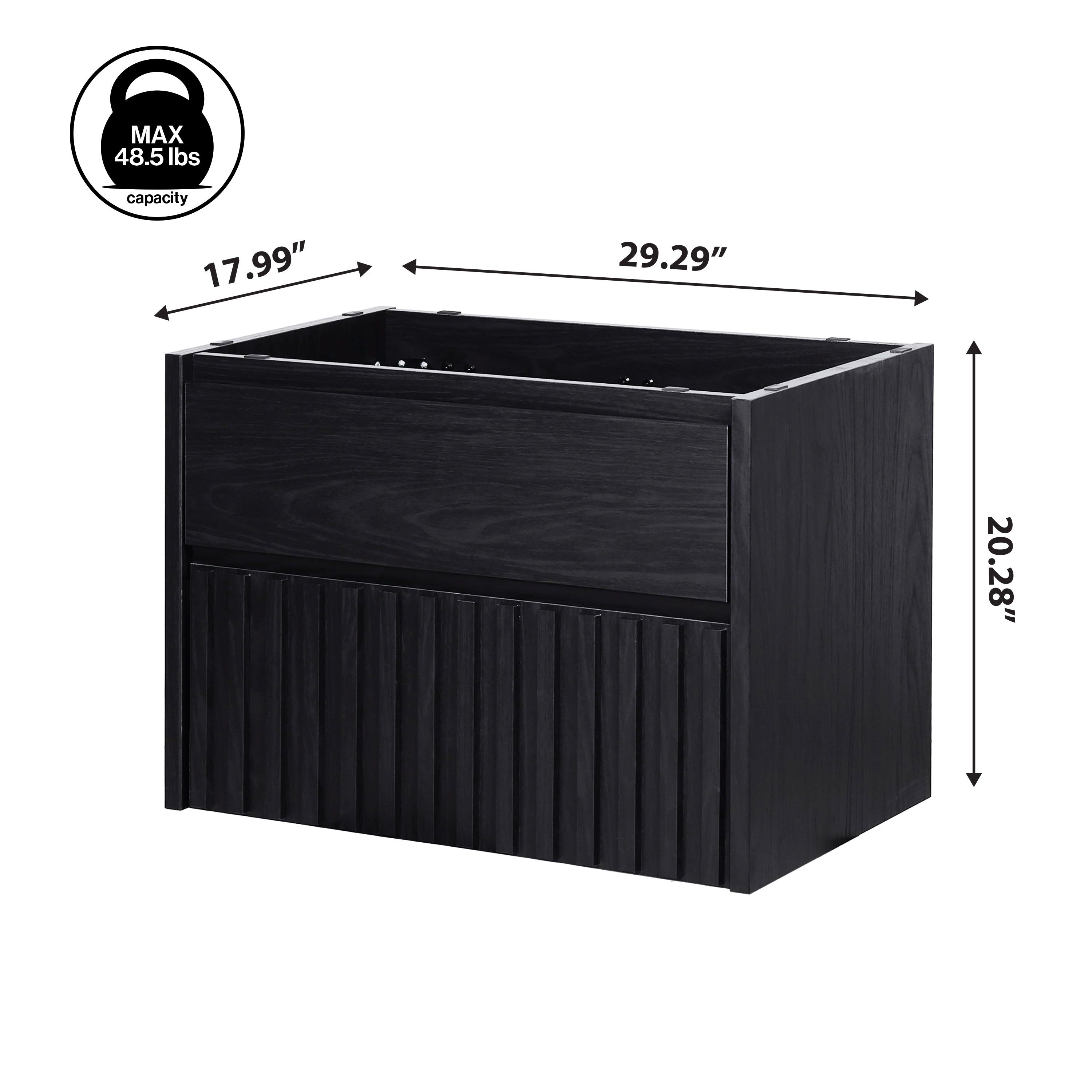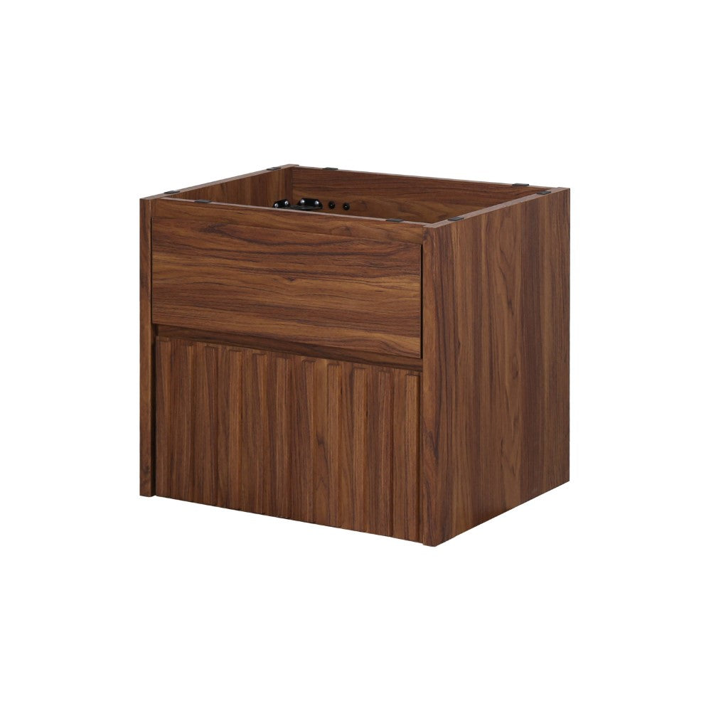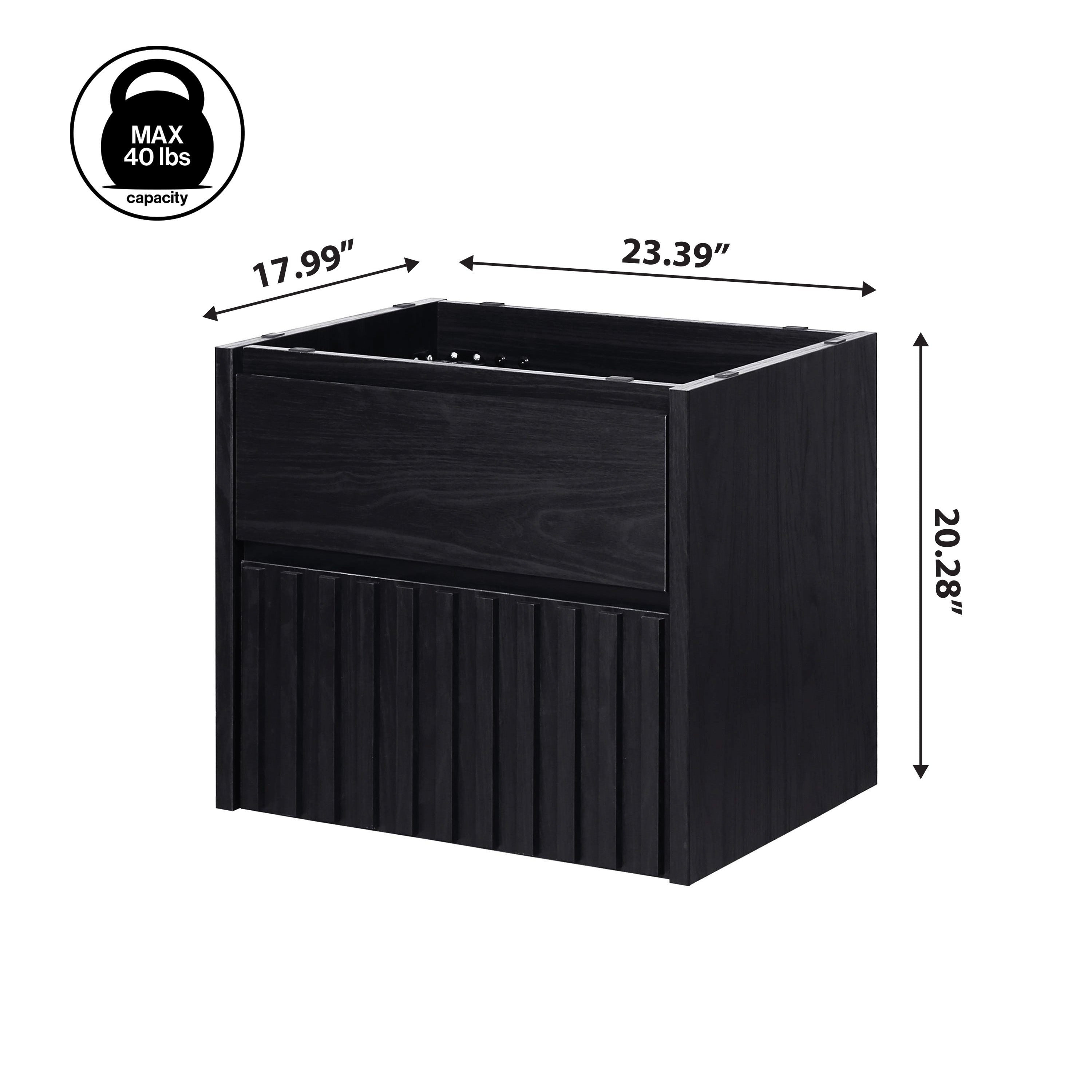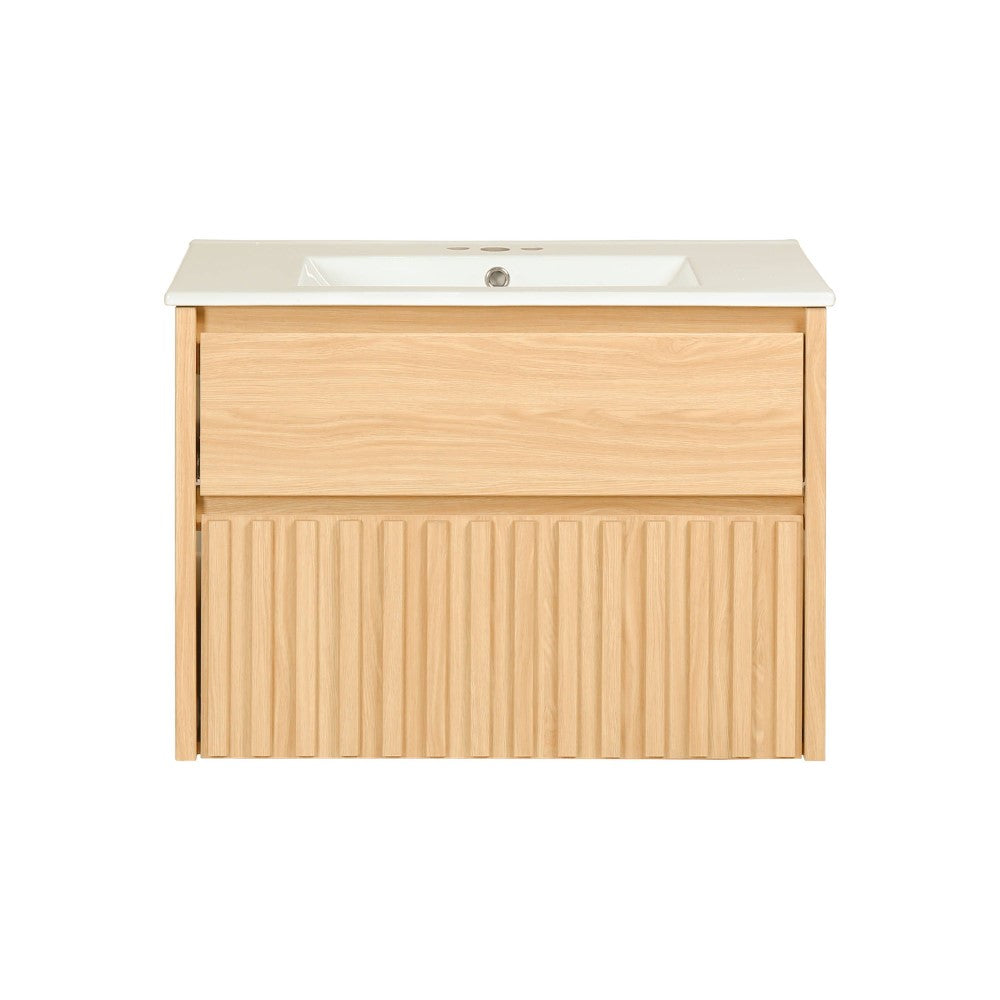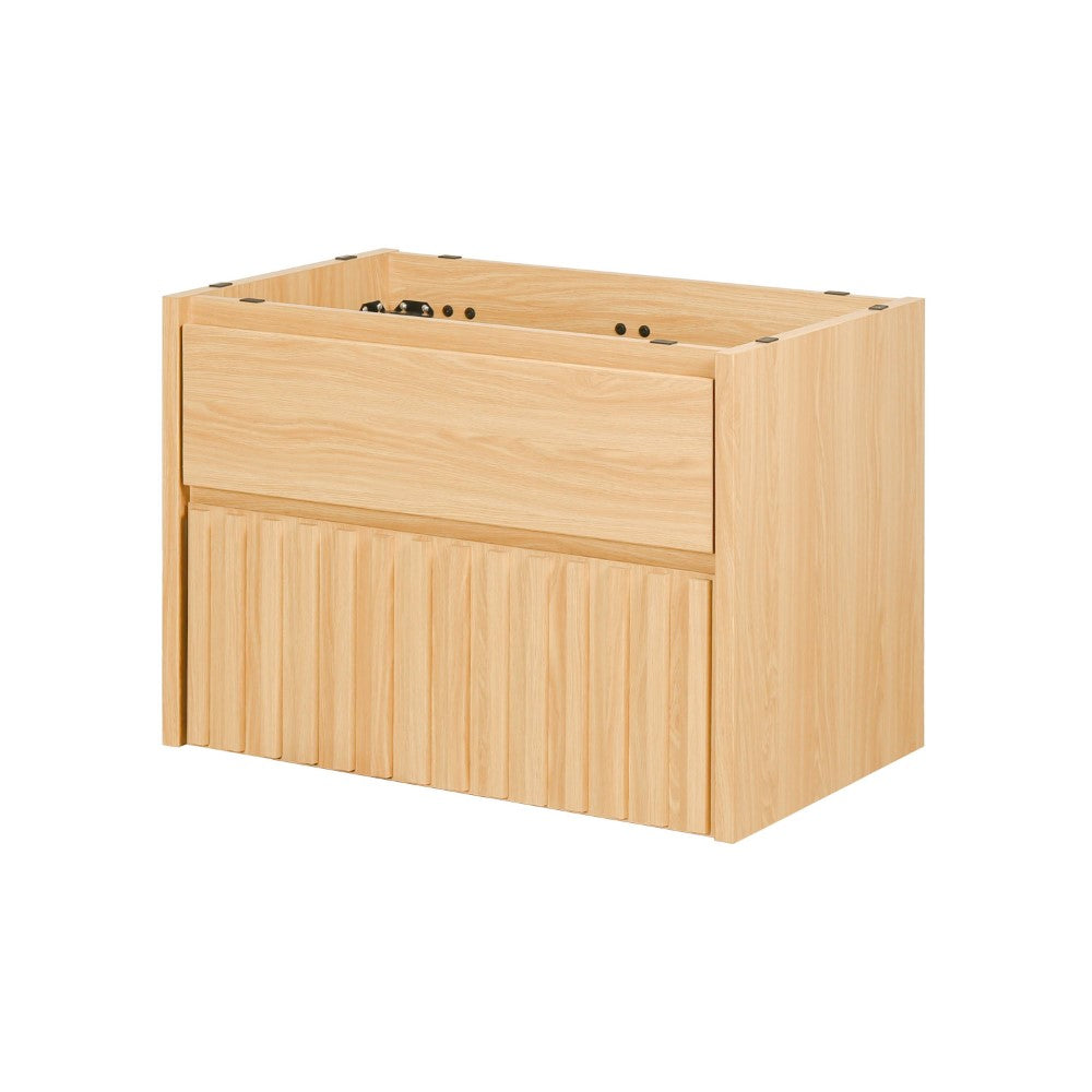 Upgrade any bathroom to a minimalist design with this modern wall-mounted vanity. Made from durable MDF with a wood-grain finish, this space-saving vanity features a chic fluted pattern on the front. Two large drawers offer plenty of storage; sink is not included.
