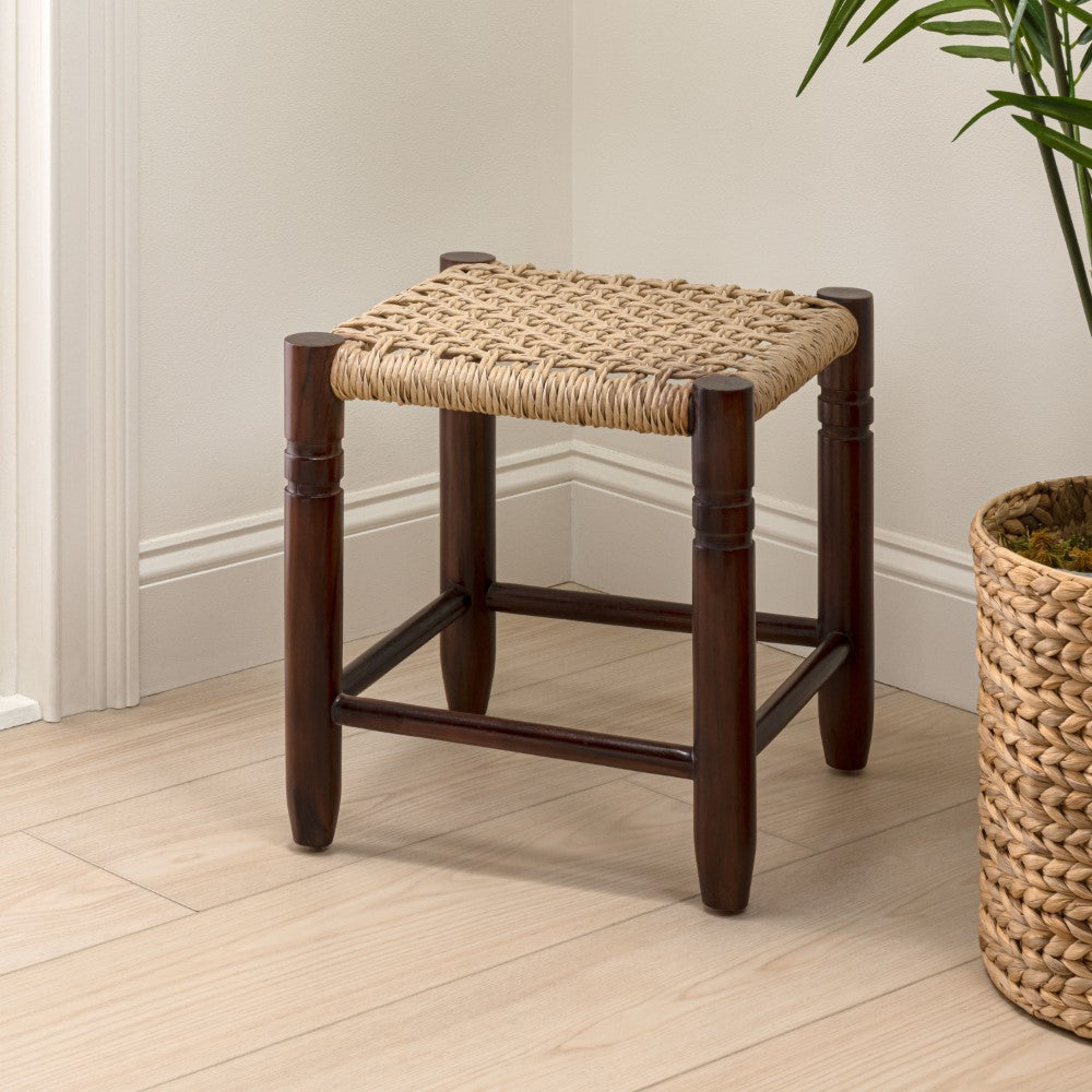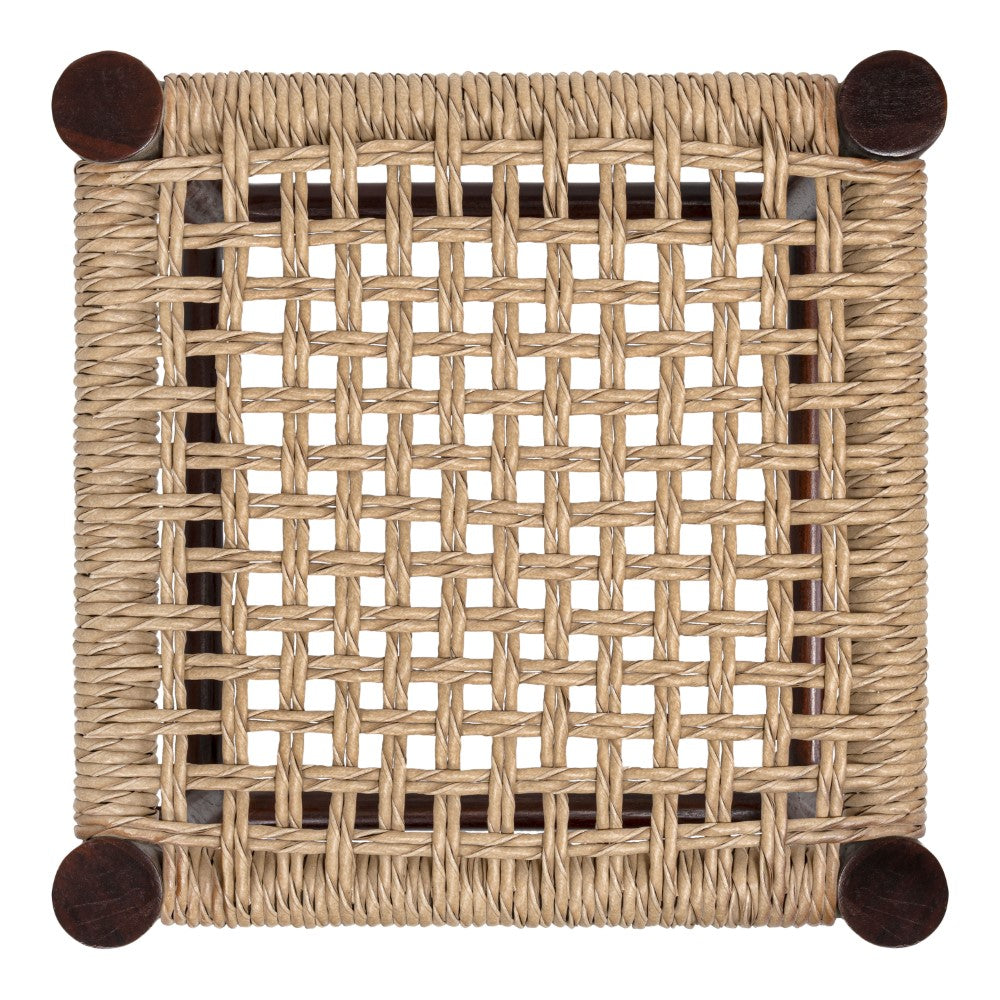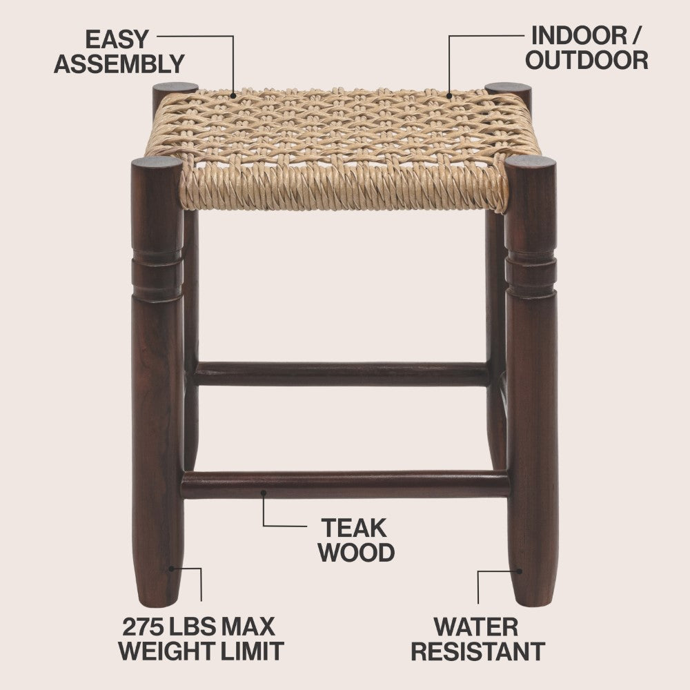 Morvyn 15.75" Casual Bohemian Handcrafted Teak Wood Backless Indoor/Outdoor Teak Wood Accent Stool with Synthetic Woven Rattan Seat