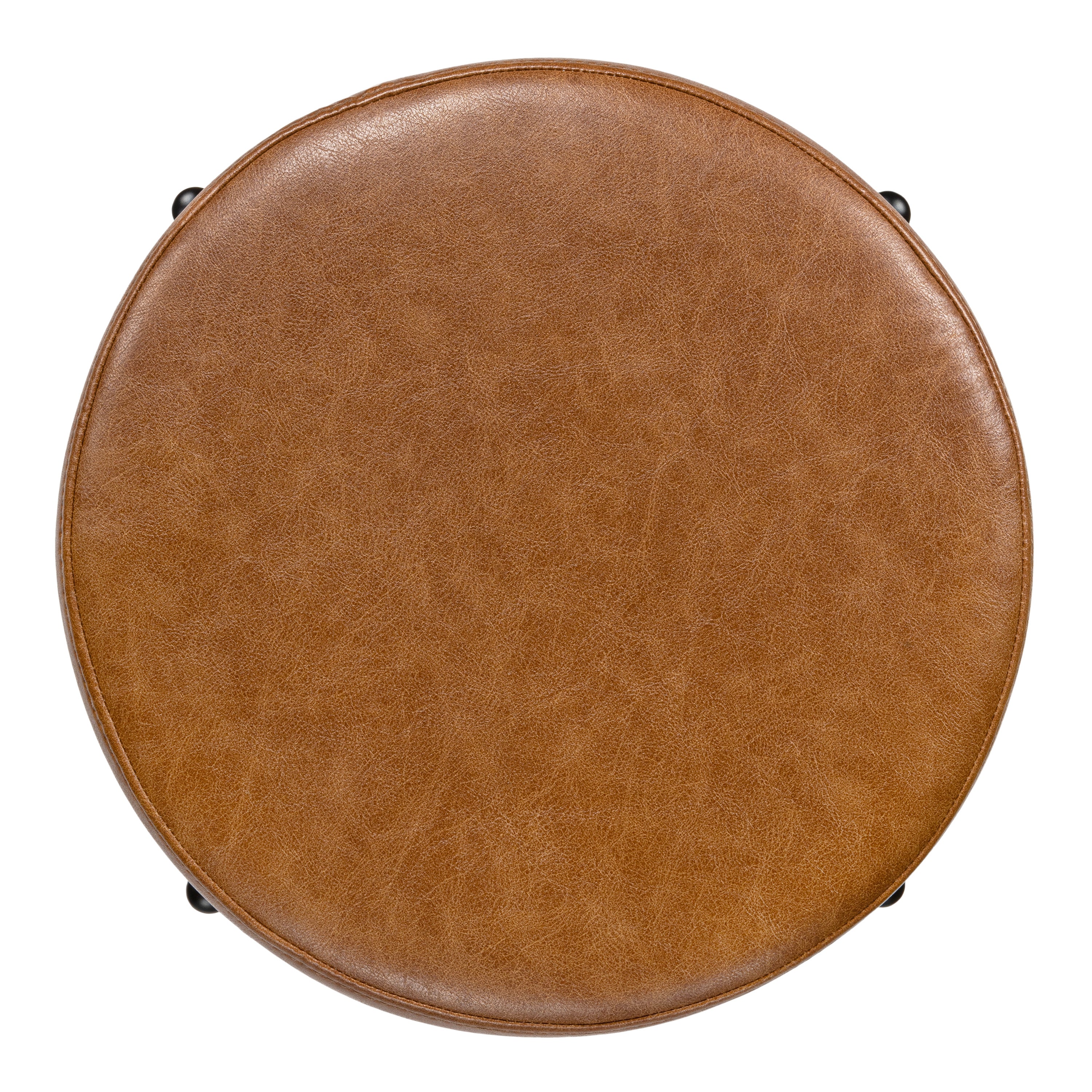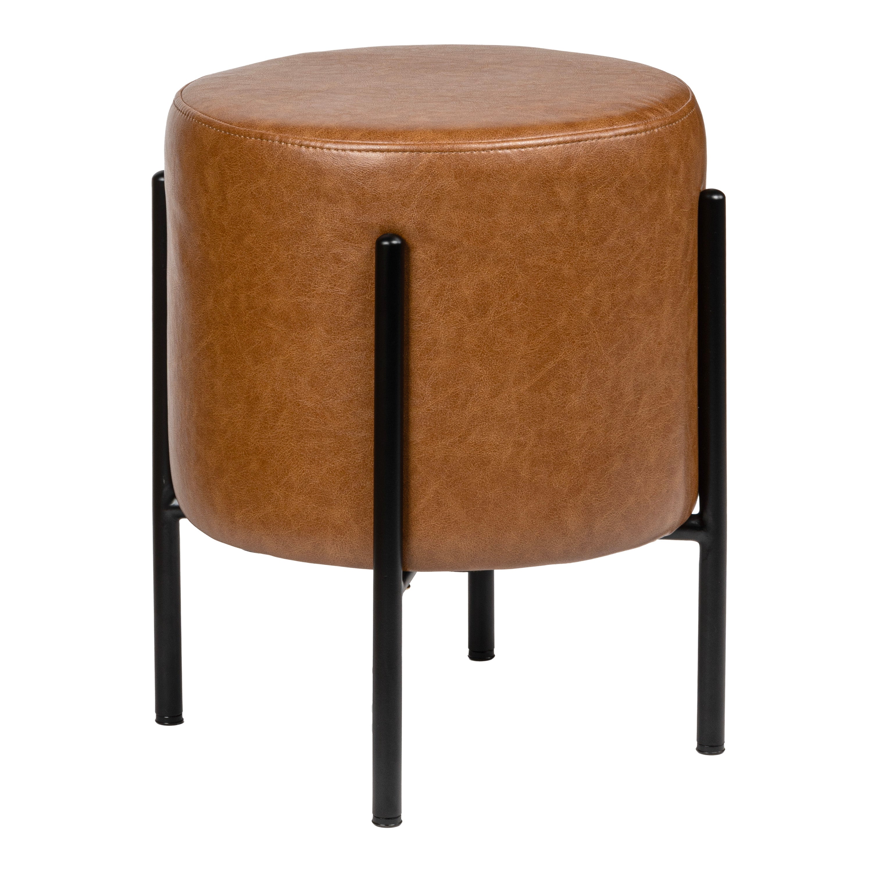 • The black powder-coated steel frame has a plush cushion upholstered in classic caramel vegan leather