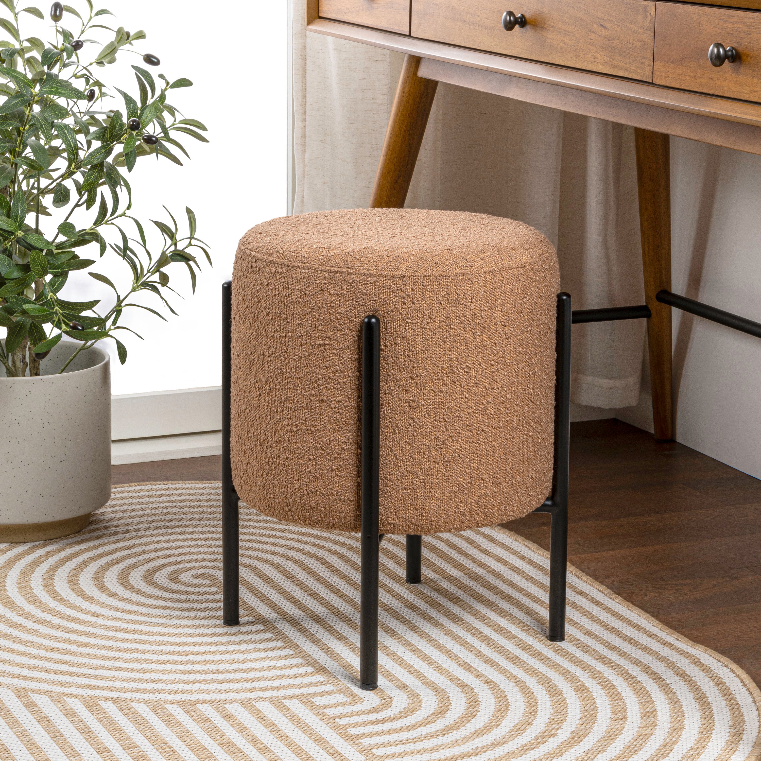 Paddy 18.5" Modern Minimalist Round Backless Metal/Bouclé Cushioned Vanity Stool