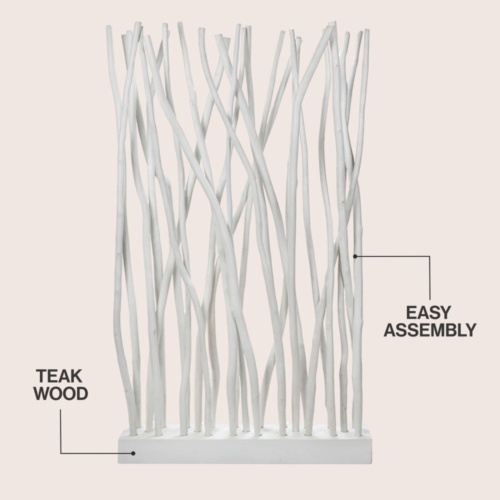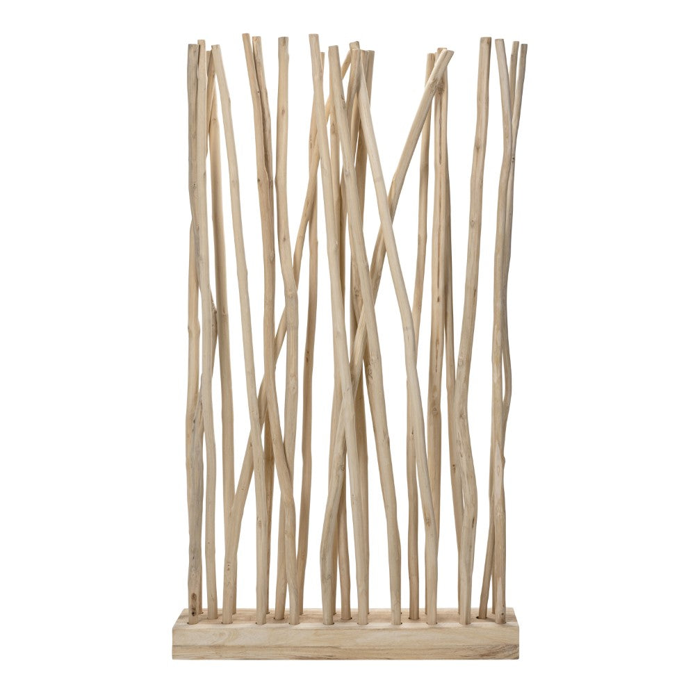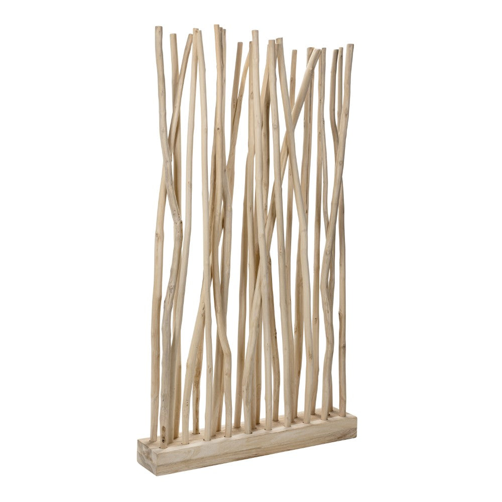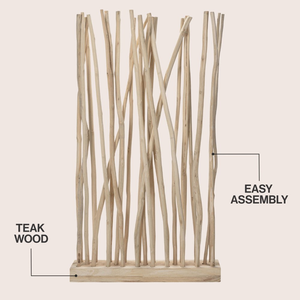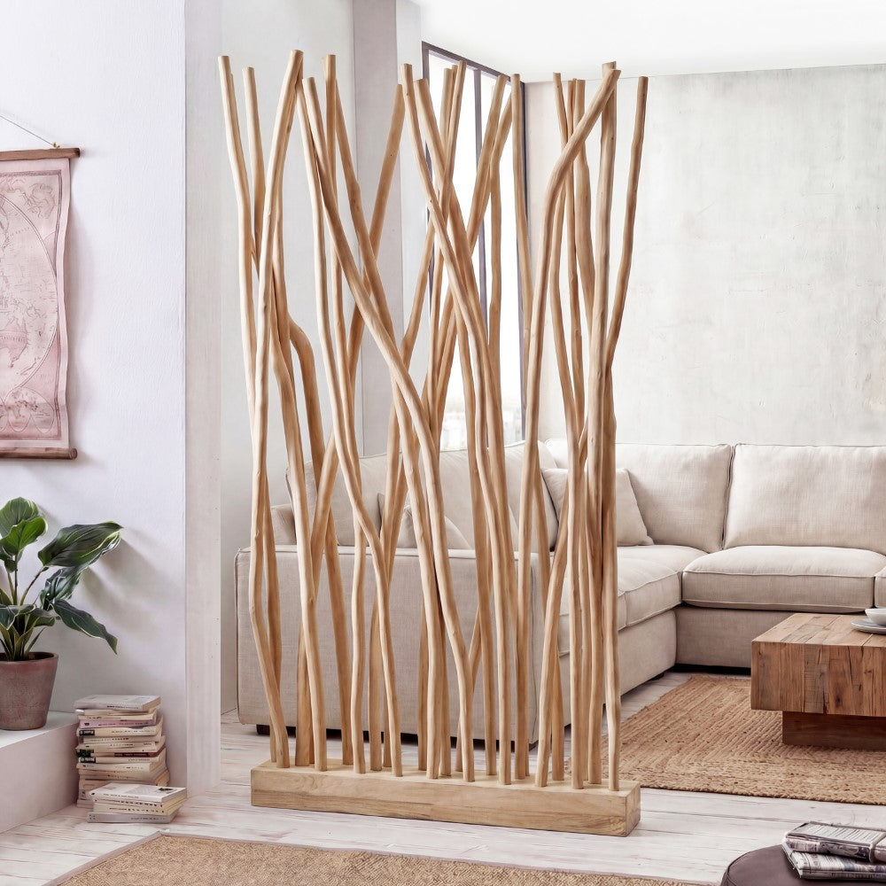 Bring a touch of organic artistry to your interiors with this sculptural teak wood room divider. Featuring 25 natural branches anchored in a sturdy wooden base, each piece showcases the unique grain and curvature of real teak for a one-of-a-kind look. Ideal for defining spaces or adding texture to a wall, this handcrafted accent is designed for indoor environments only.