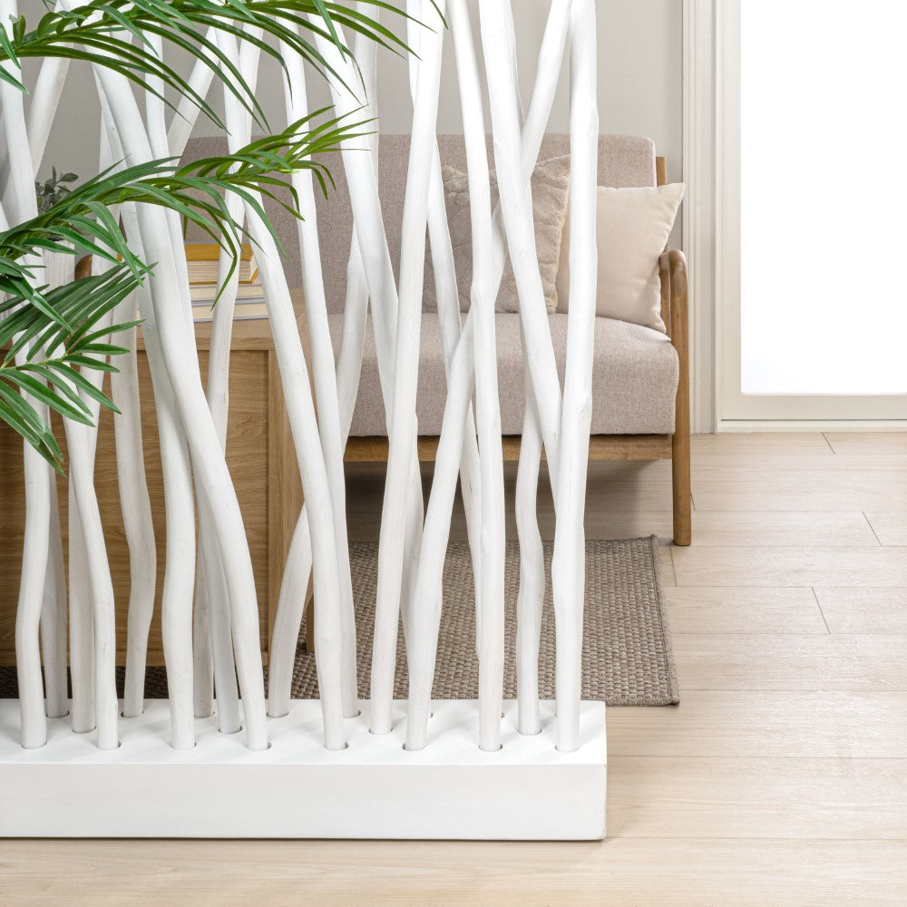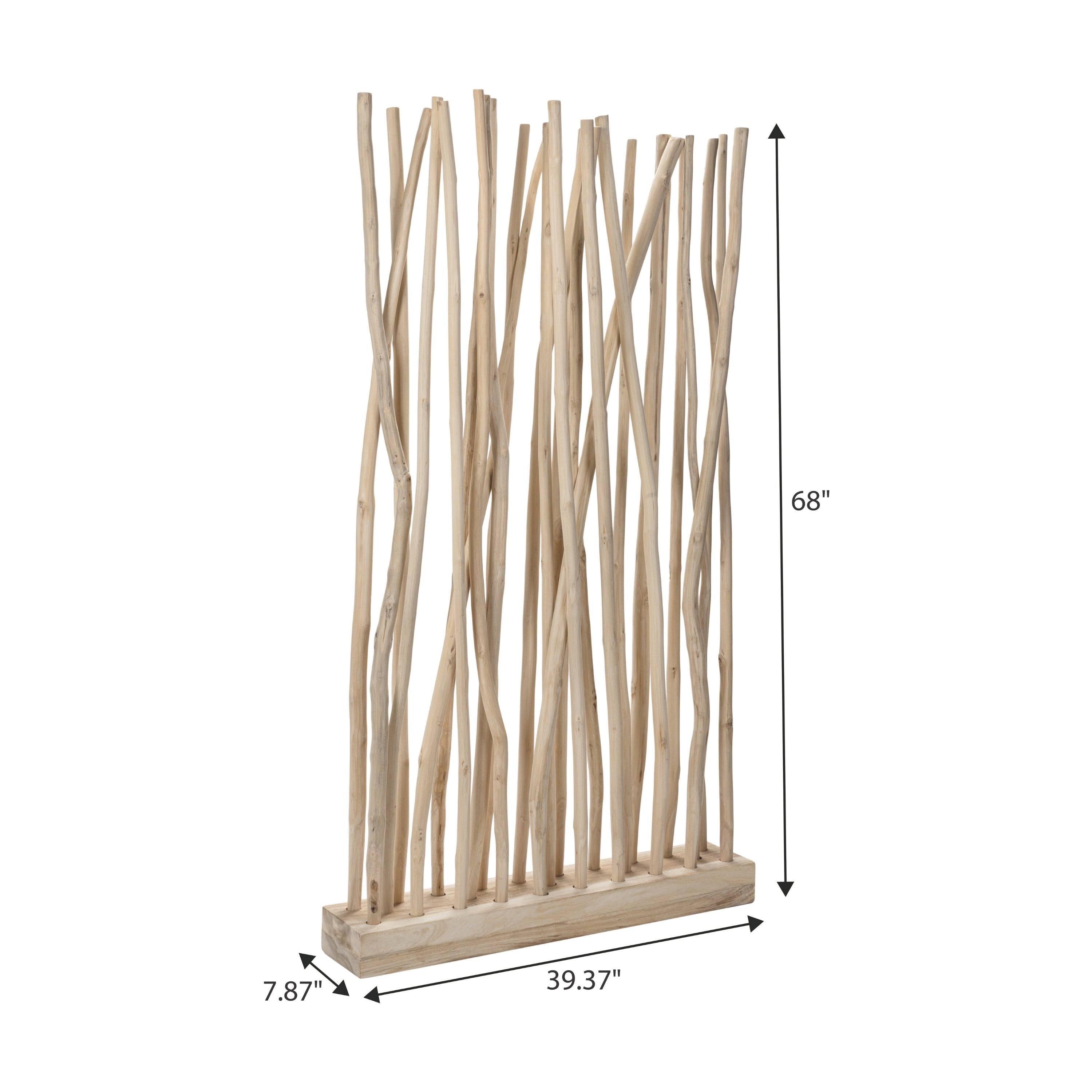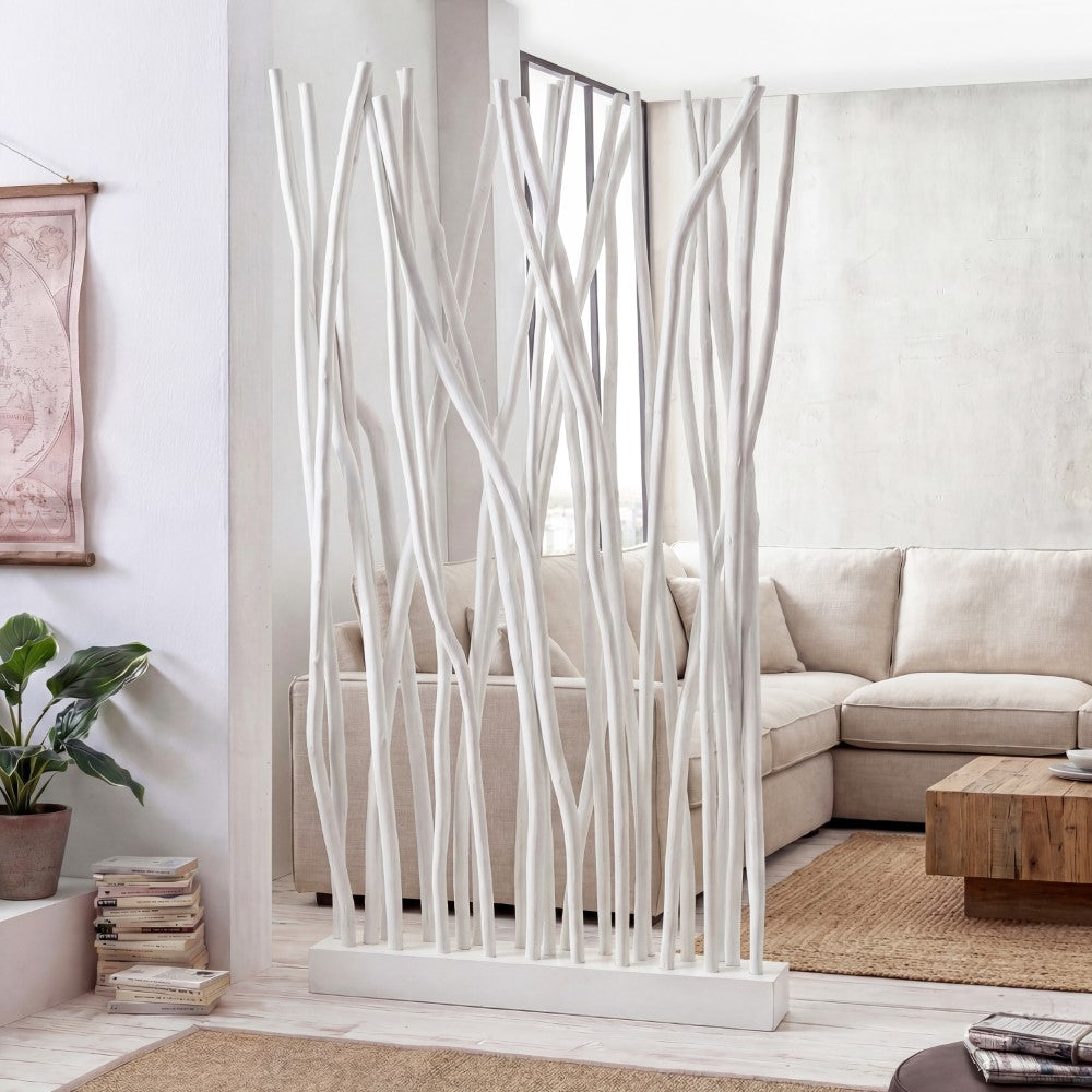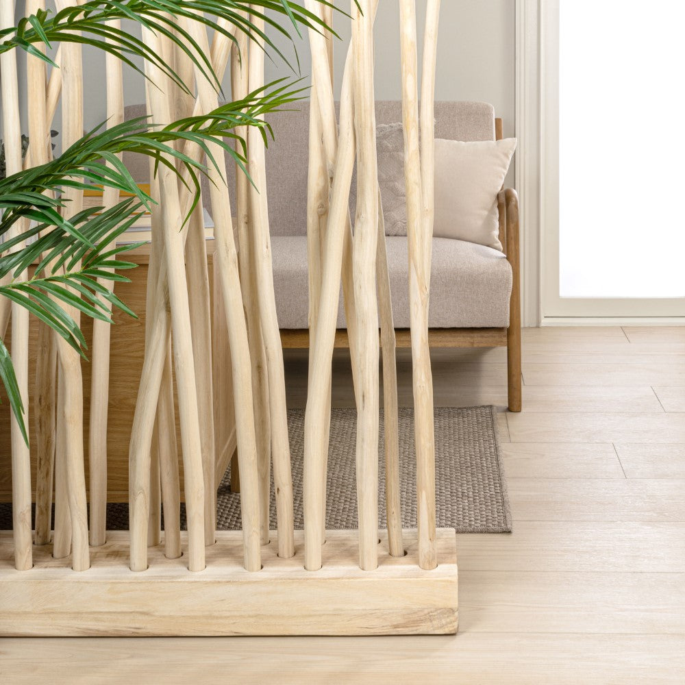 Bring a touch of organic artistry to your interiors with this sculptural teak wood room divider. Featuring 25 natural branches anchored in a sturdy wooden base, each piece showcases the unique grain and curvature of real teak for a one-of-a-kind look. Ideal for defining spaces or adding texture to a wall, this handcrafted accent is designed for indoor environments only.