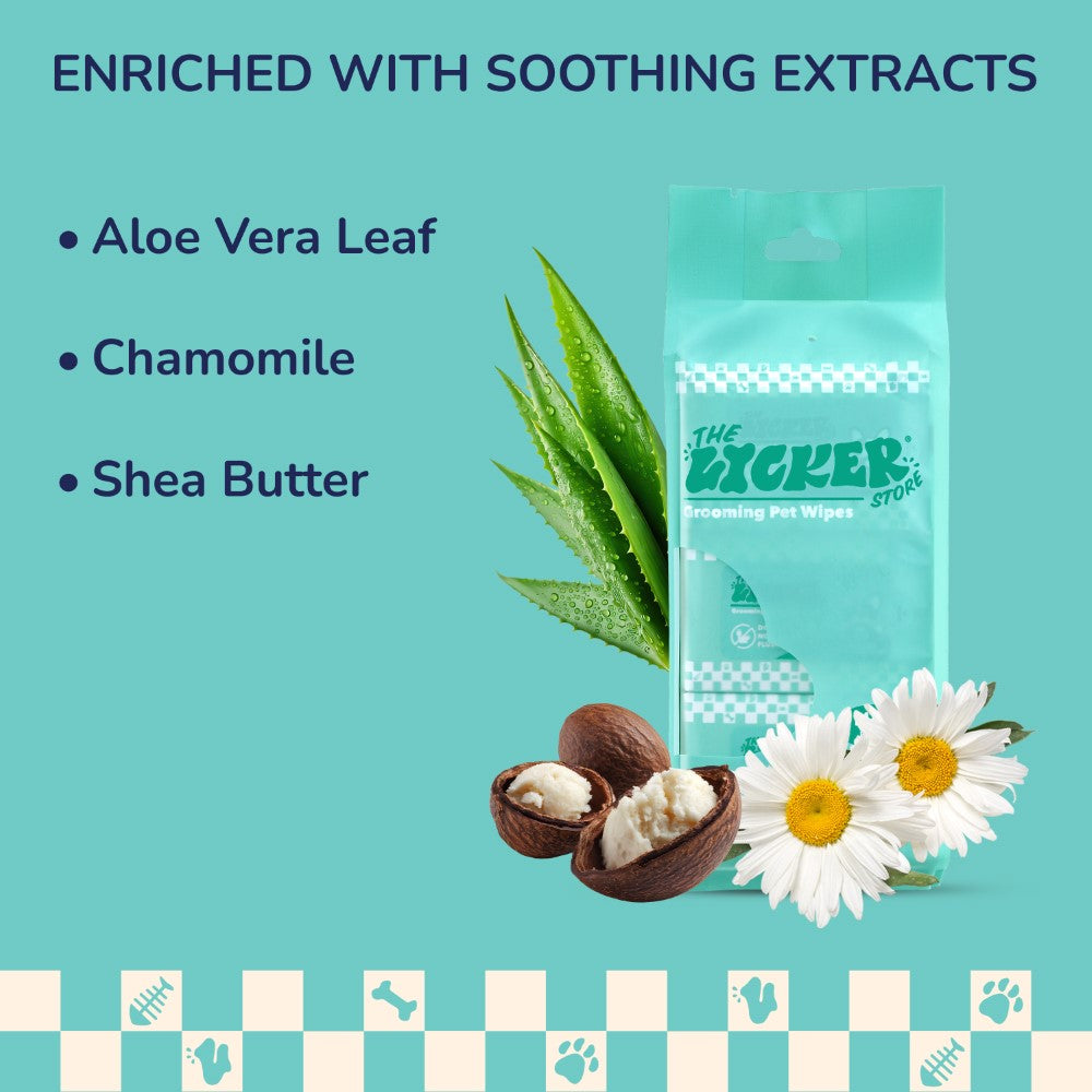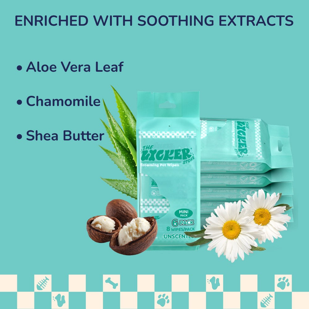 These mini dog body wipes make quick cleanups simple, gentle, and effective. Enriched with natural extracts of aloe vera leaf, chamomile, and shea butter, each soft wipe soothes and nourishes the skin while removing dirt, dander, and odor. Perfect for daily use or travel, they keep your pet clean, comfortable, and freshly groomed anywhere.