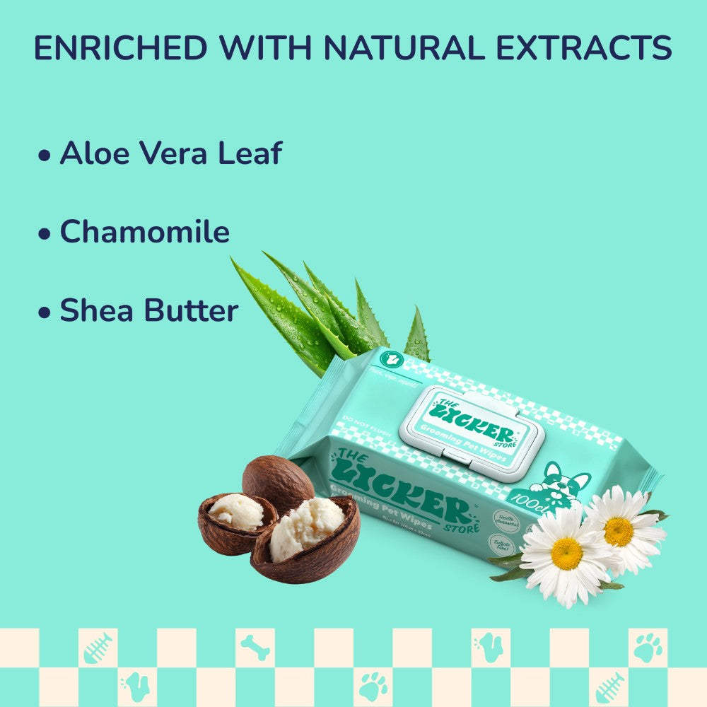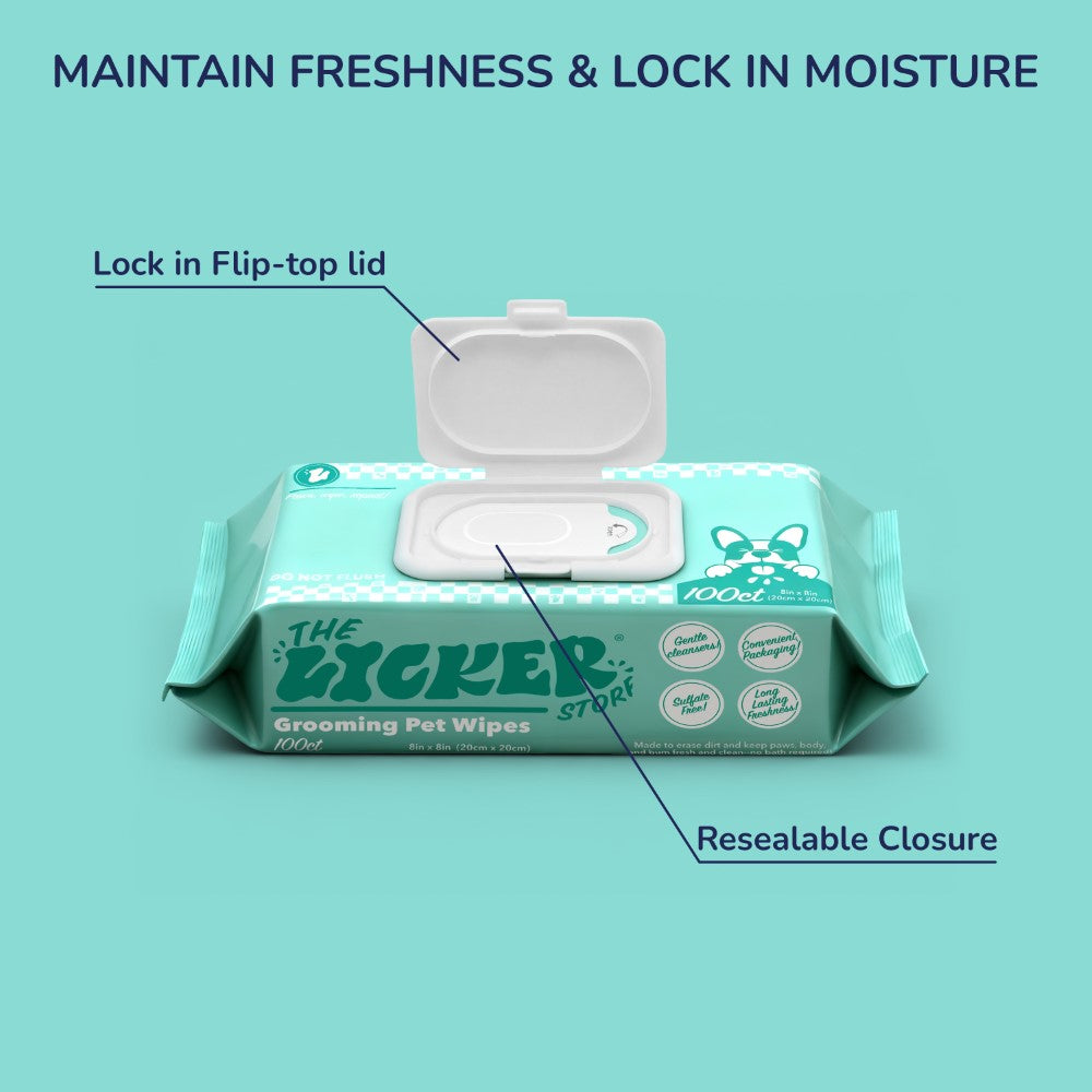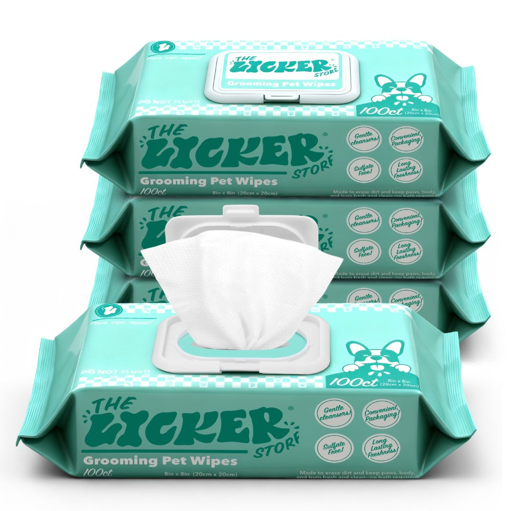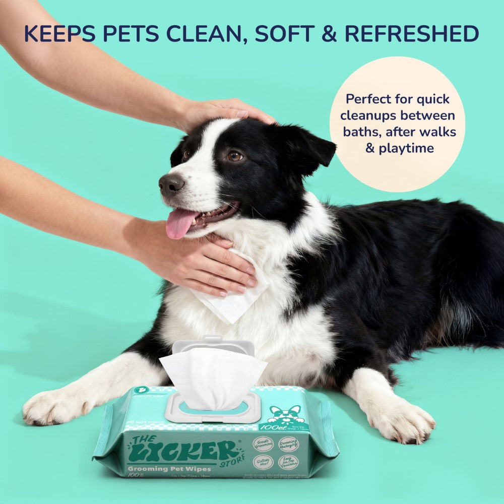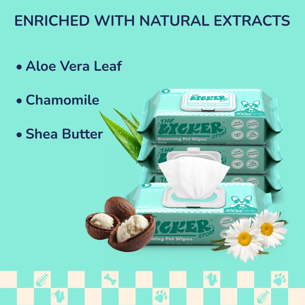 LickUp Hydrating Hypoallergenic Unscented Dog Grooming Wipes with Aloe Vera, Chamomile, and Shea Butter