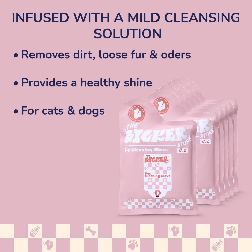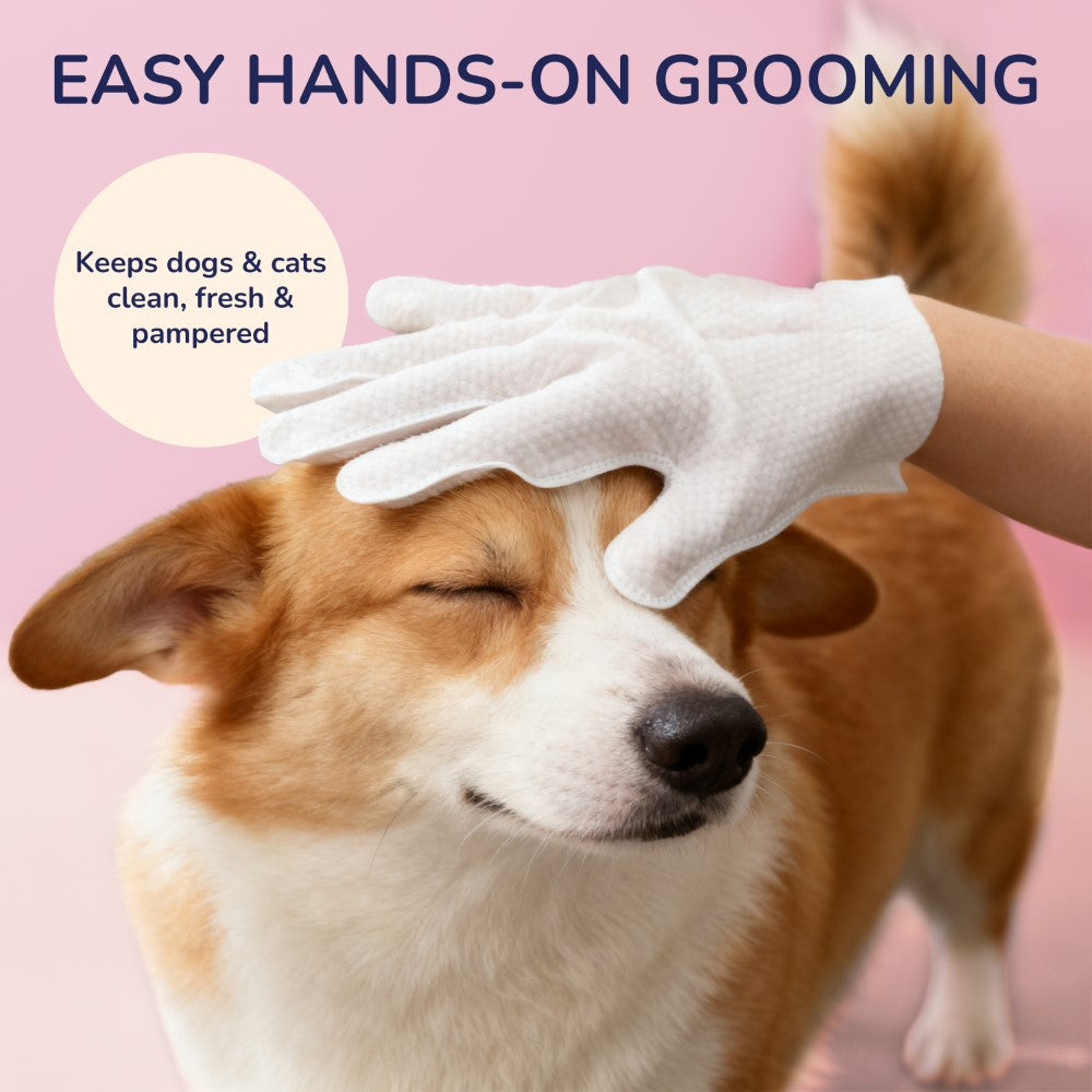 These soft glove wipes make pet grooming simple, gentle, and mess-free. Designed to fit comfortably on your hand, each glove is infused with a mild cleansing solution that removes dirt, loose fur, and odors while massaging your pet’s coat. Perfect for quick touch-ups, they keep dogs and cats clean, fresh, and comfortably pampered.