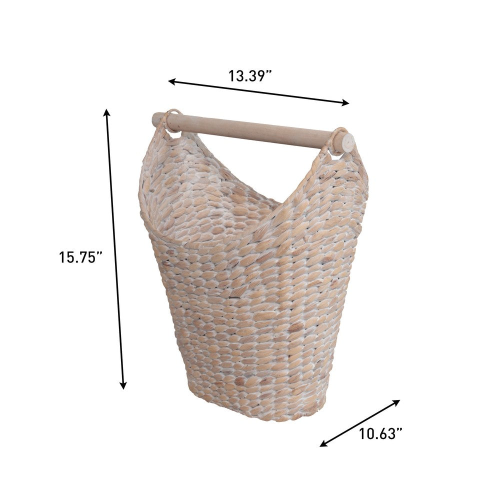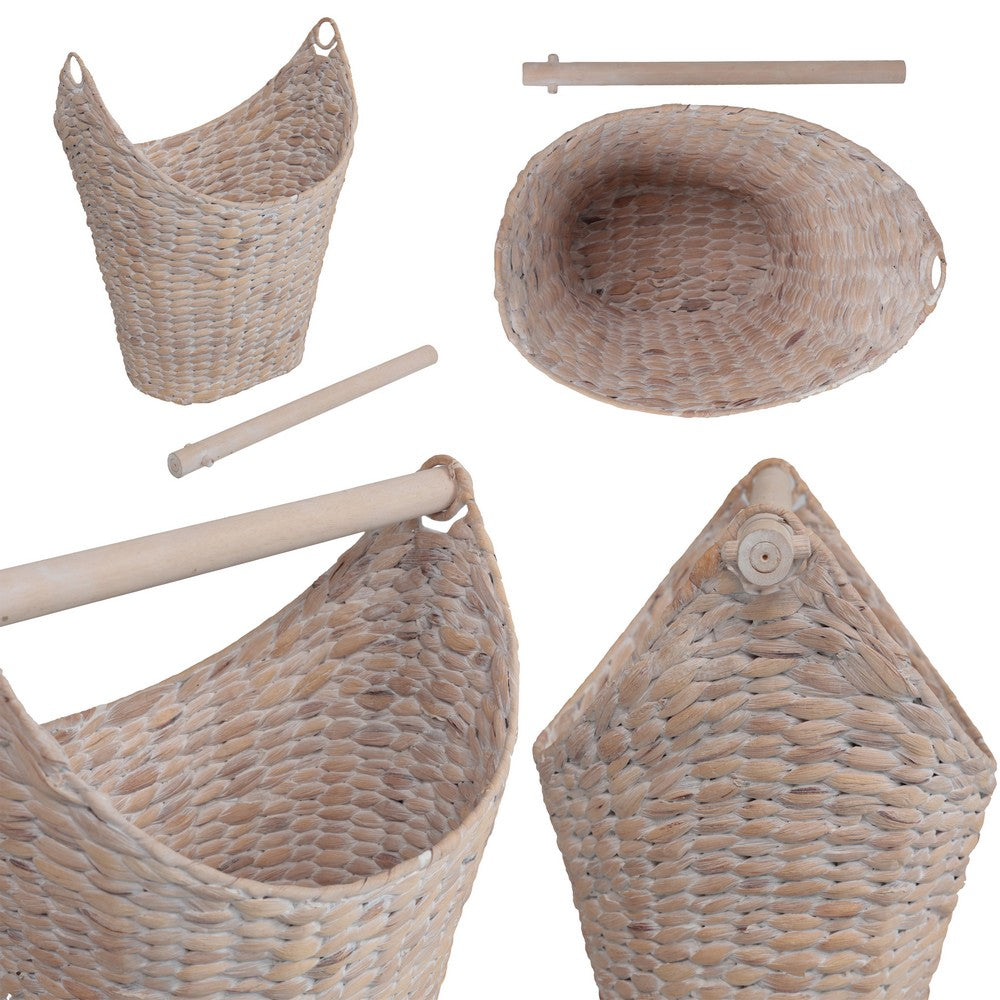Talia Classic Coastal Hand-Woven Water Hyacinth Toilet Paper Basket with Wood Bar