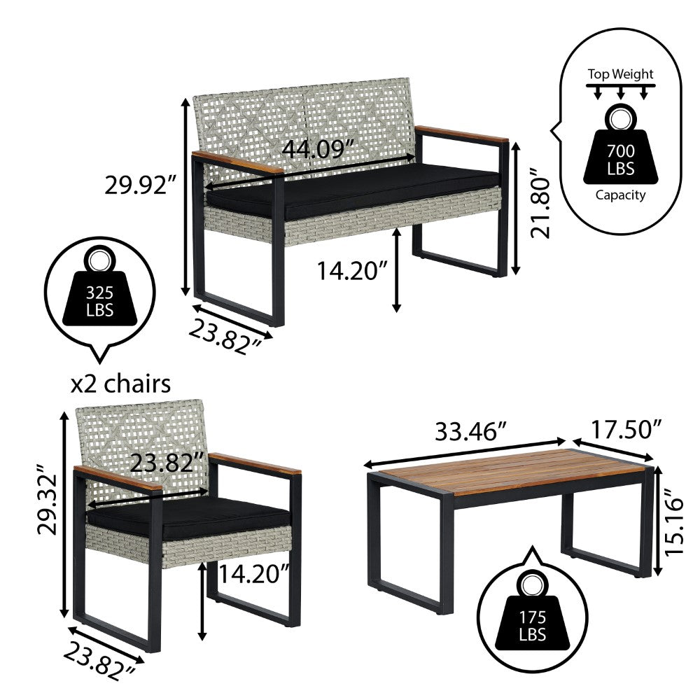 • 4 Pieces Set Includes: 2 x armchair ; 1 x loveseat ;1 x table (Assembly Required)