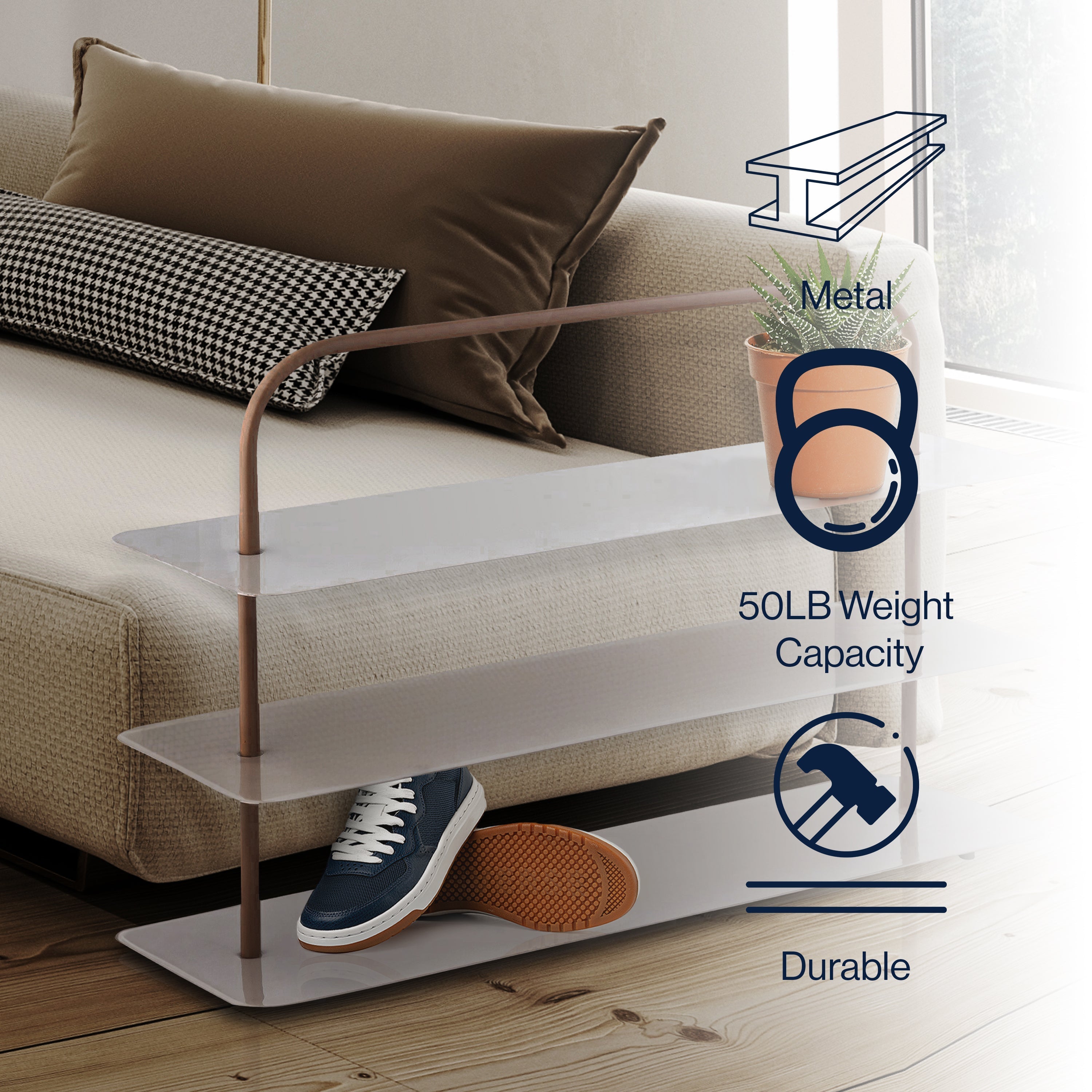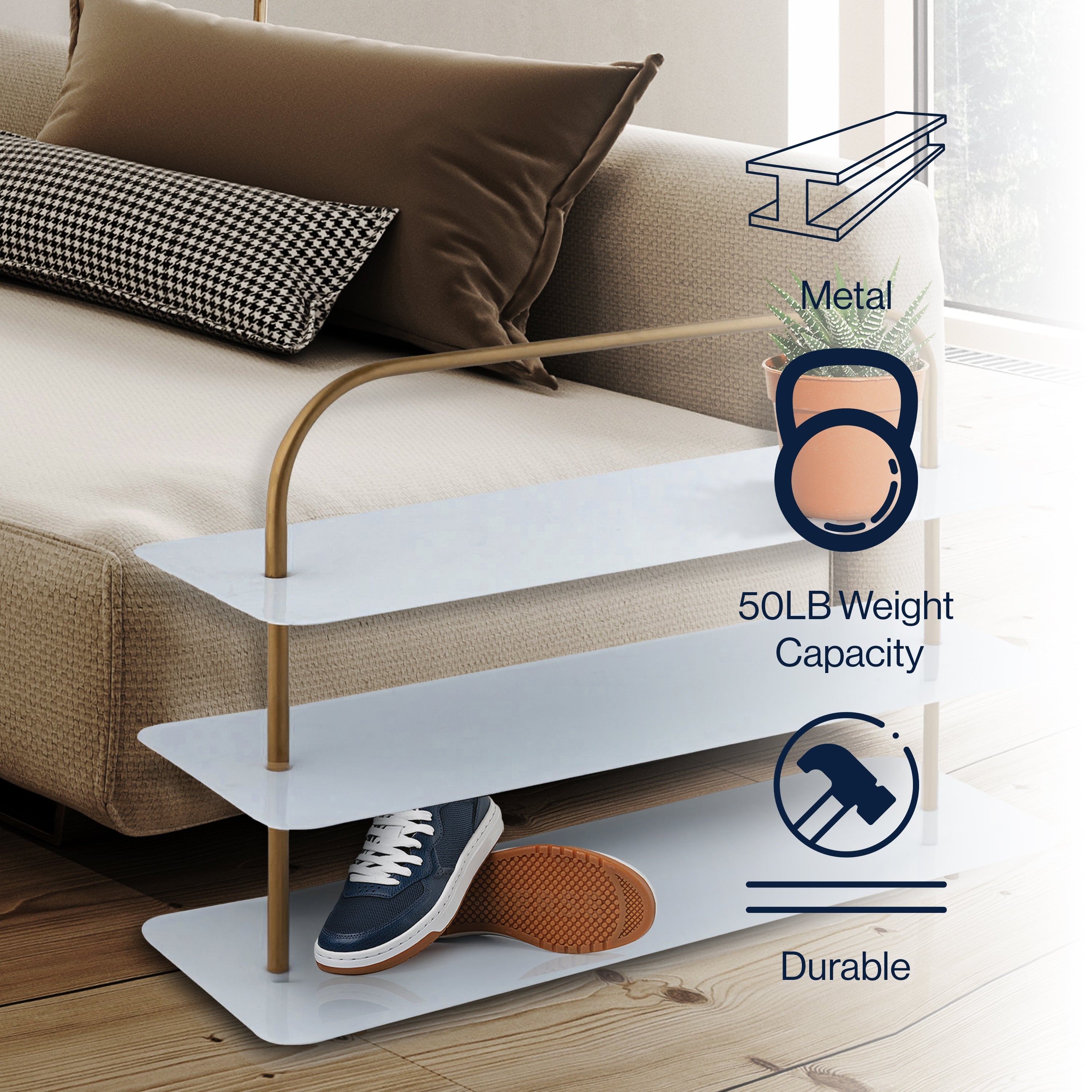 Our three-tier shoe rack is made of a minimalist metal frame and can store up to nine pairs of shoes! Incorporating our shoe rack in your space will not only clean up your clutter but will also add a modern touch to your decor. This shoe rack is the perfect addition to any foyer, entryway, or mudroom.