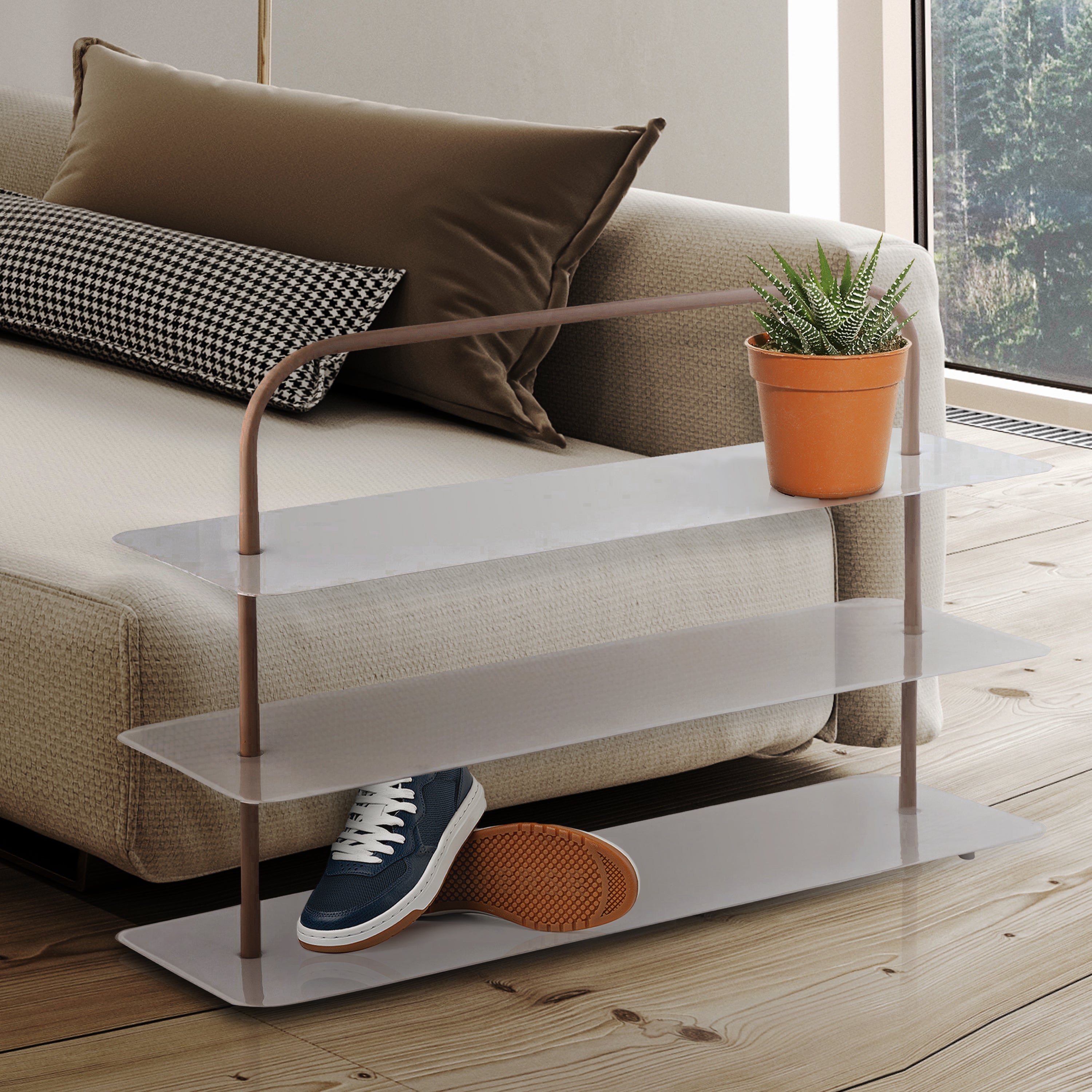 Coffe Minimalist 24.5" 9-Pair 3-Tier Iron Thin Flat Plate Shoe Rack