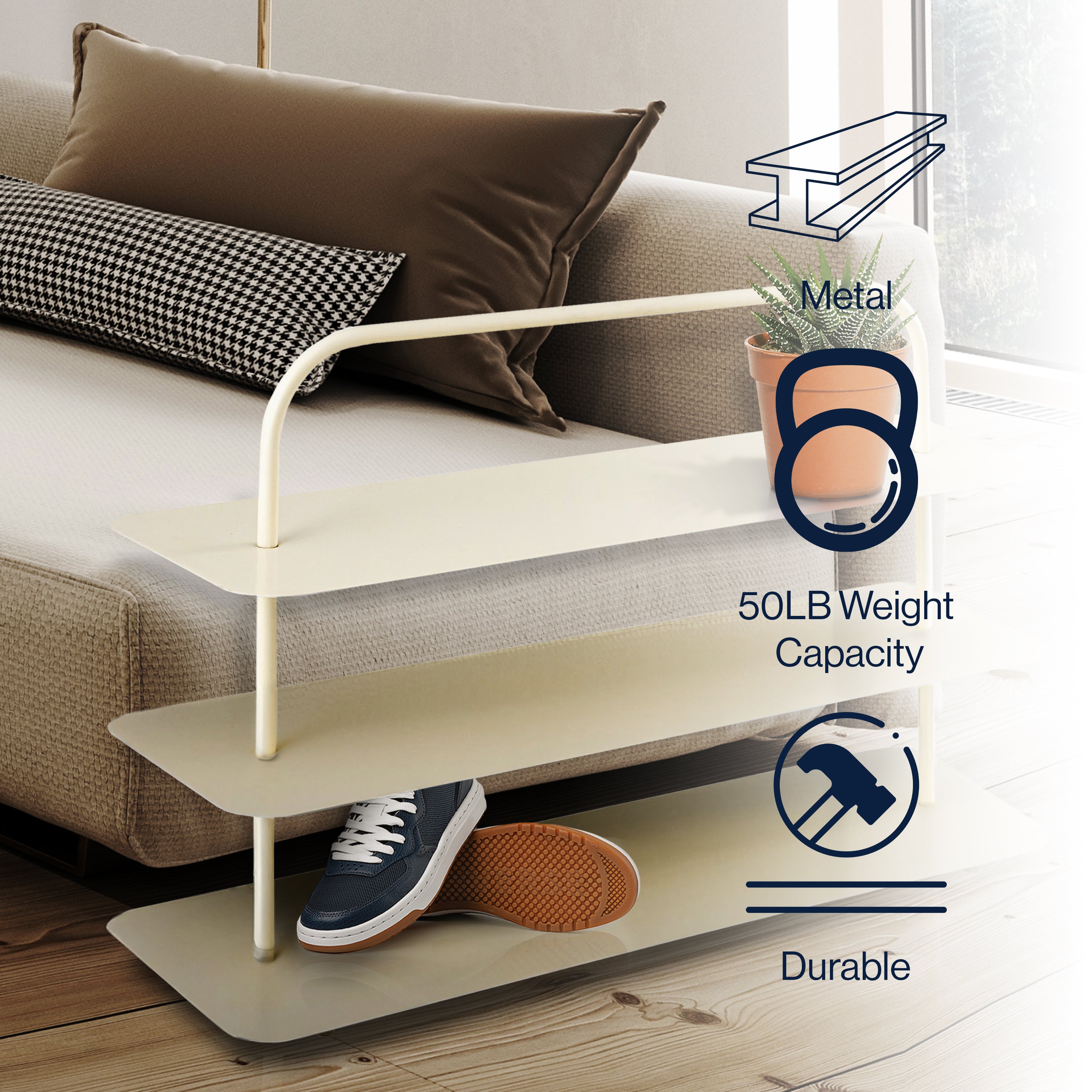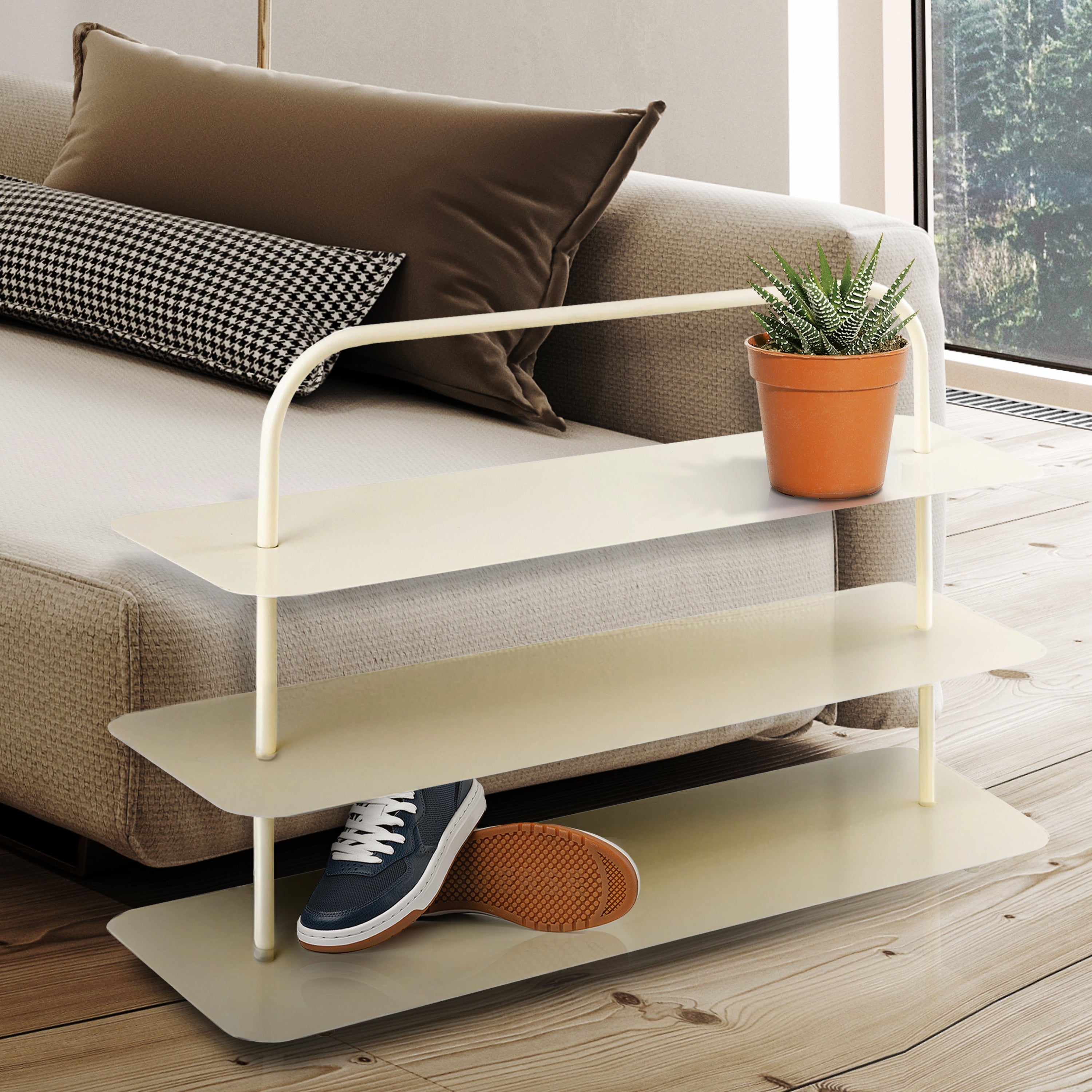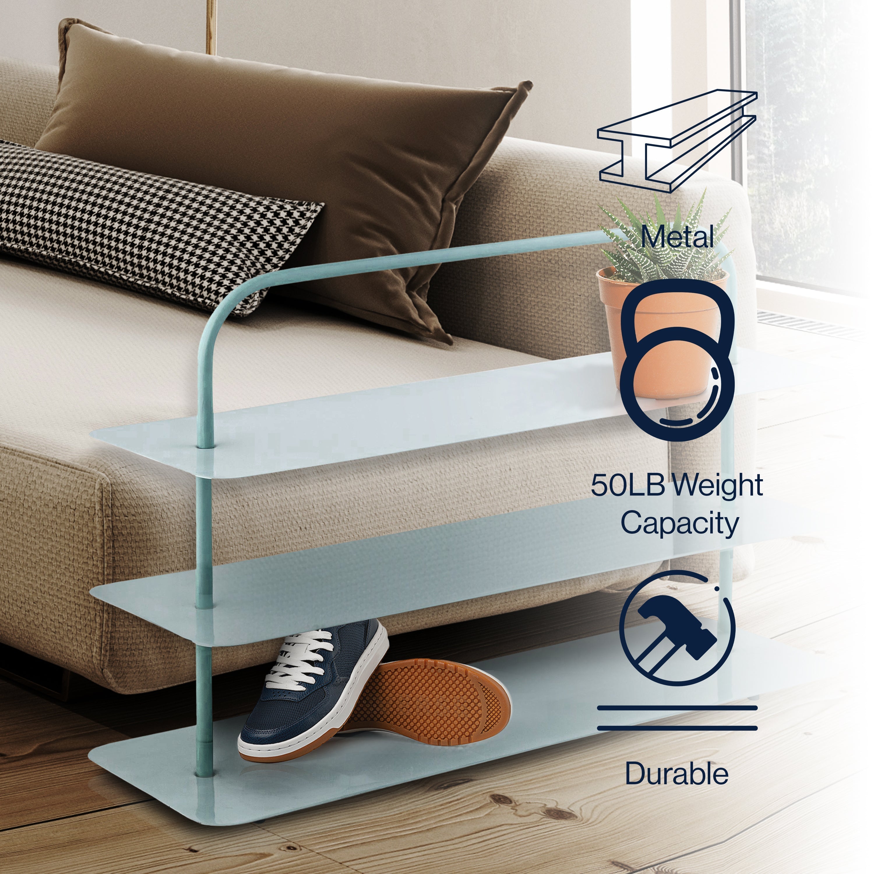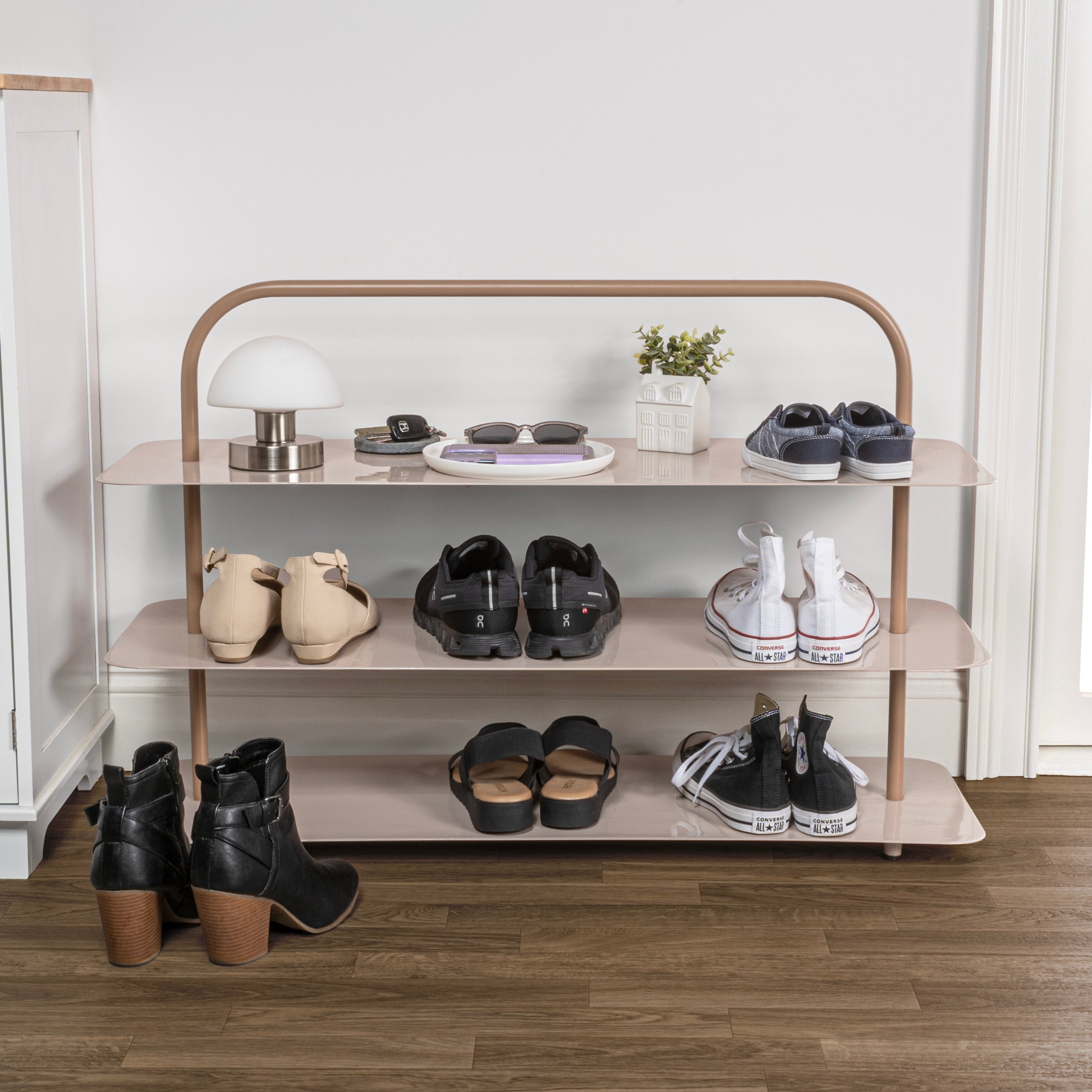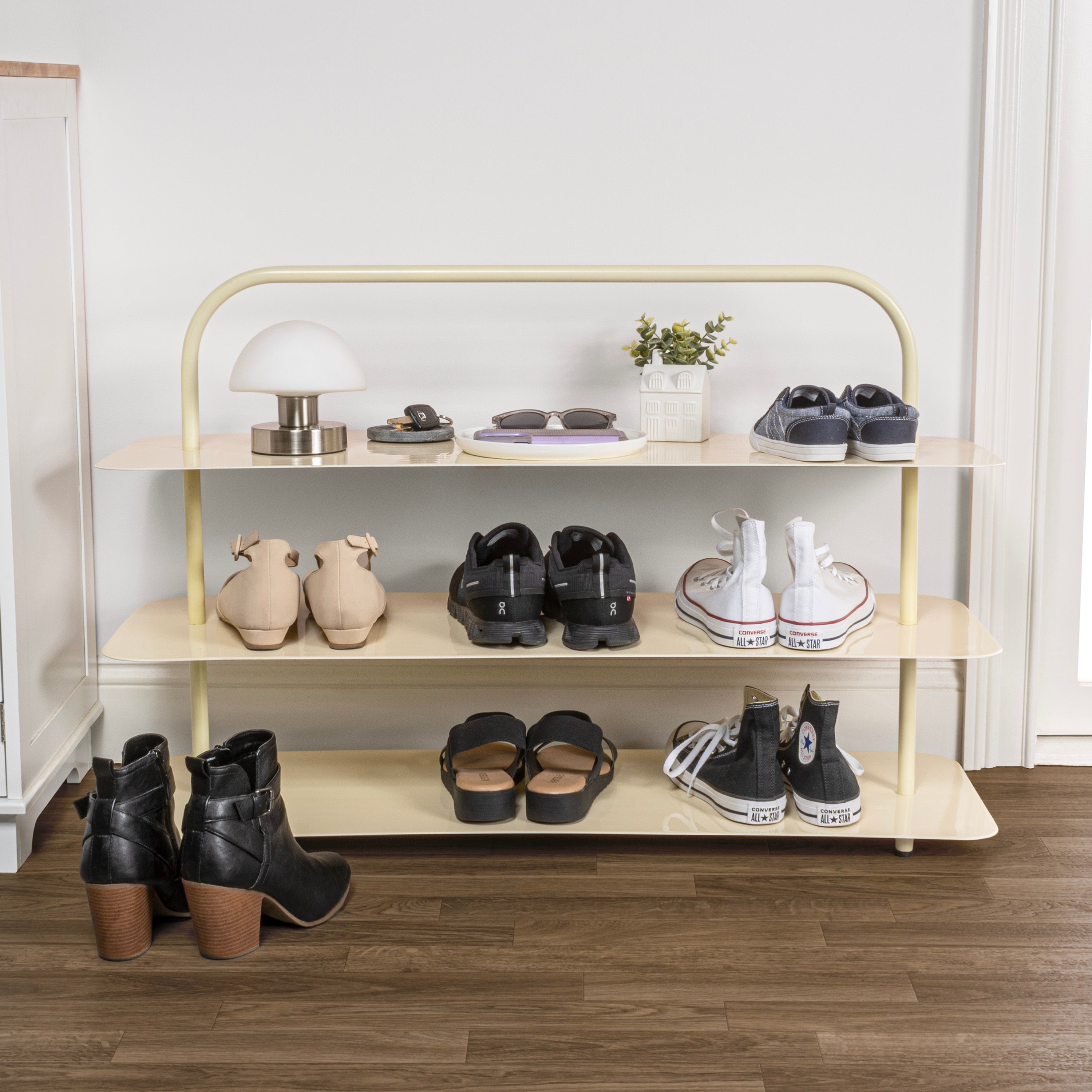 - Holds up to three pairs of shoes per shelf, nine pairs in total