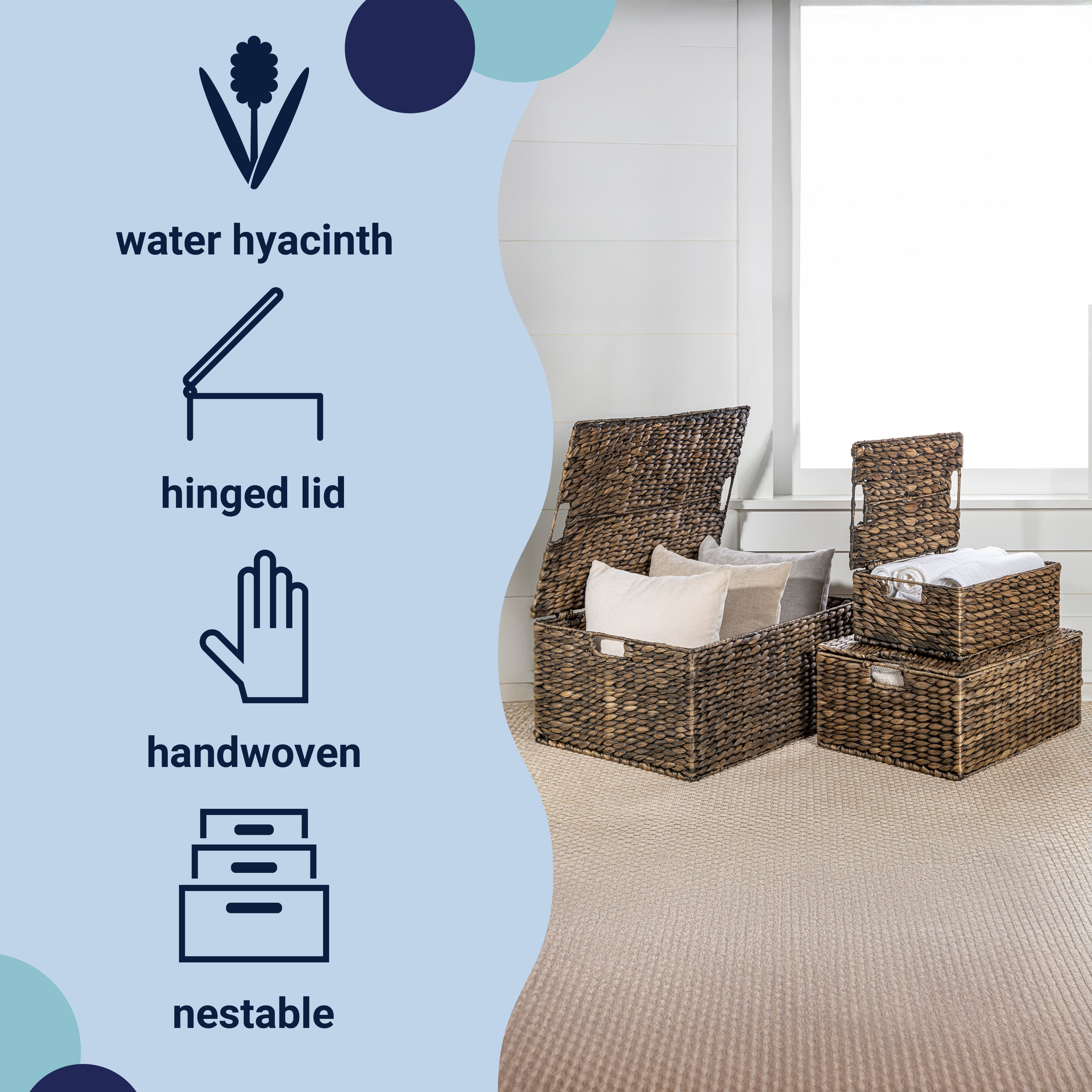 Ram Classic Farmhouse Woven Hyacinth Rectangular Storage Baskets with Lids and Handles