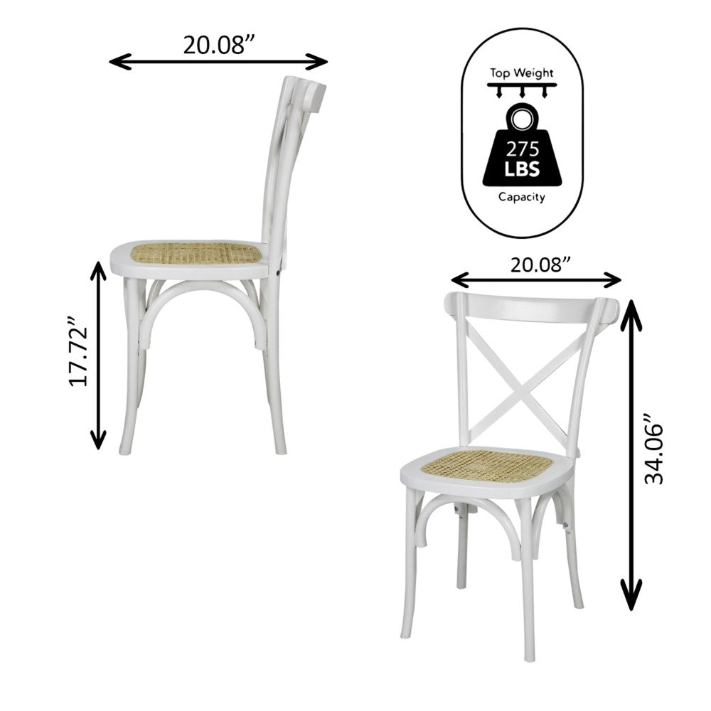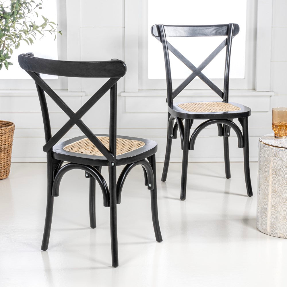Add instant bistro style to your kitchen or dining room with these classic café dining chairs. Our set of two cross-back chairs is made from sturdy hardwood and protected with a durable finish. Whether your home is traditional or modern, the cane seats on these timeless chairs are a stylish addition to your dining area or home office.