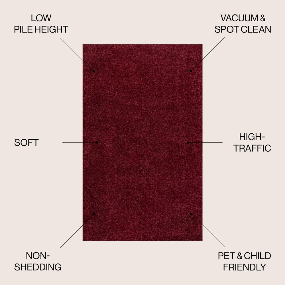Trivor Haze Solid Low-pile Area Rug Dark Red