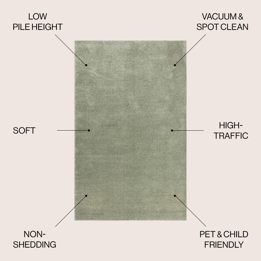 Saturated color gives this solid area rug a modern, clean look that's ideal for a living room, family room, dining room, bedroom, or kids' rooms. Soft, durable synthetic fibers are an easy maintenance solution for homes with kids and pets. With several colors to choose from, this rug makes an ideal centerpiece for a mid-century, contemporary, coastal , farmhouse or minimalist interior.
