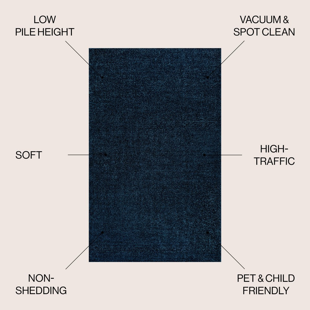 Trivor Haze Solid Low-Pile Area Rug Navy