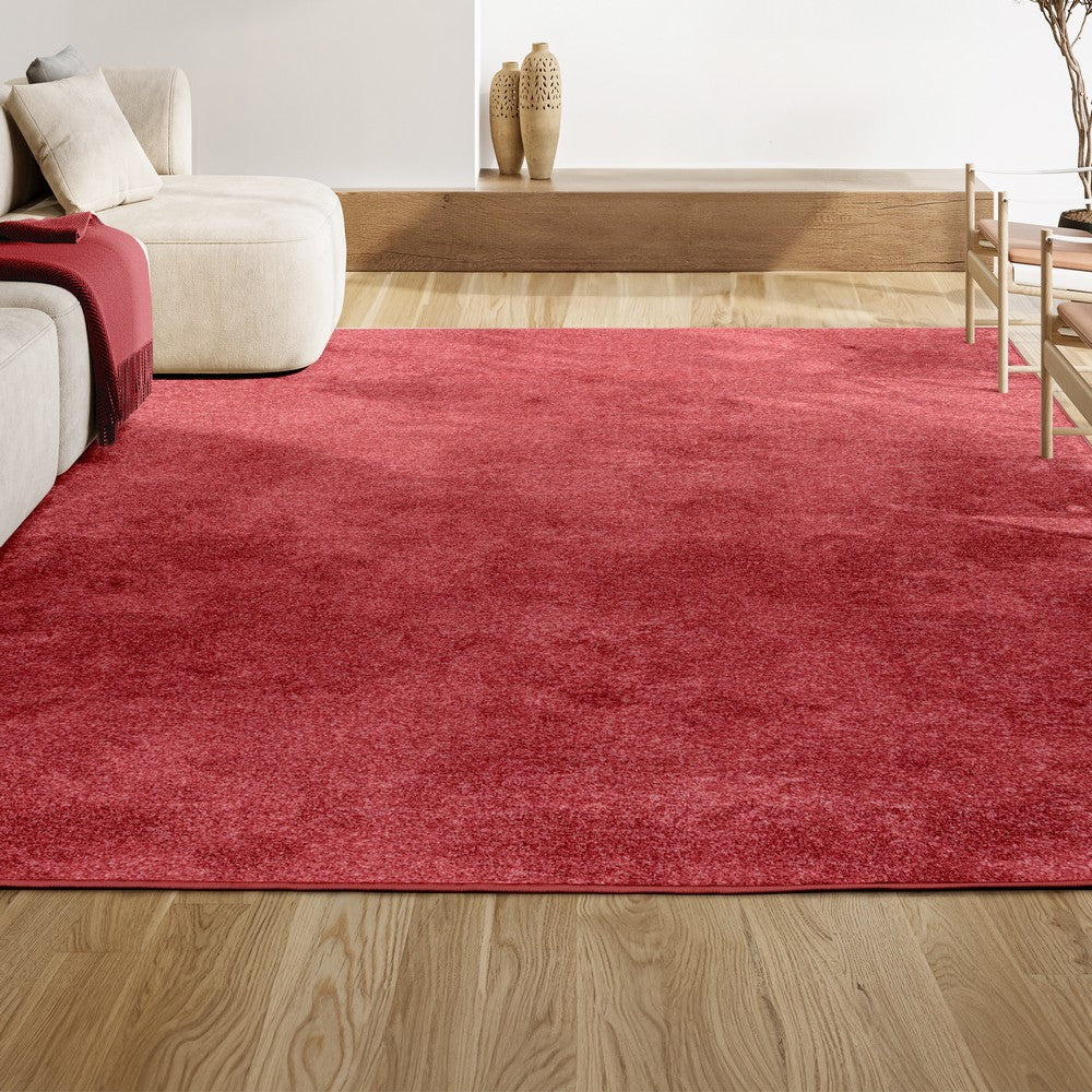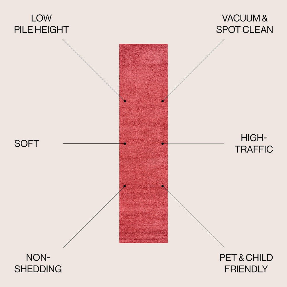 Saturated color gives this solid area rug a modern, clean look that's ideal for a living room, family room, dining room, bedroom, or kids' rooms. Soft, durable synthetic fibers are an easy maintenance solution for homes with kids and pets. With several colors to choose from, this rug makes an ideal centerpiece for a mid-century, contemporary, coastal , farmhouse or minimalist interior.